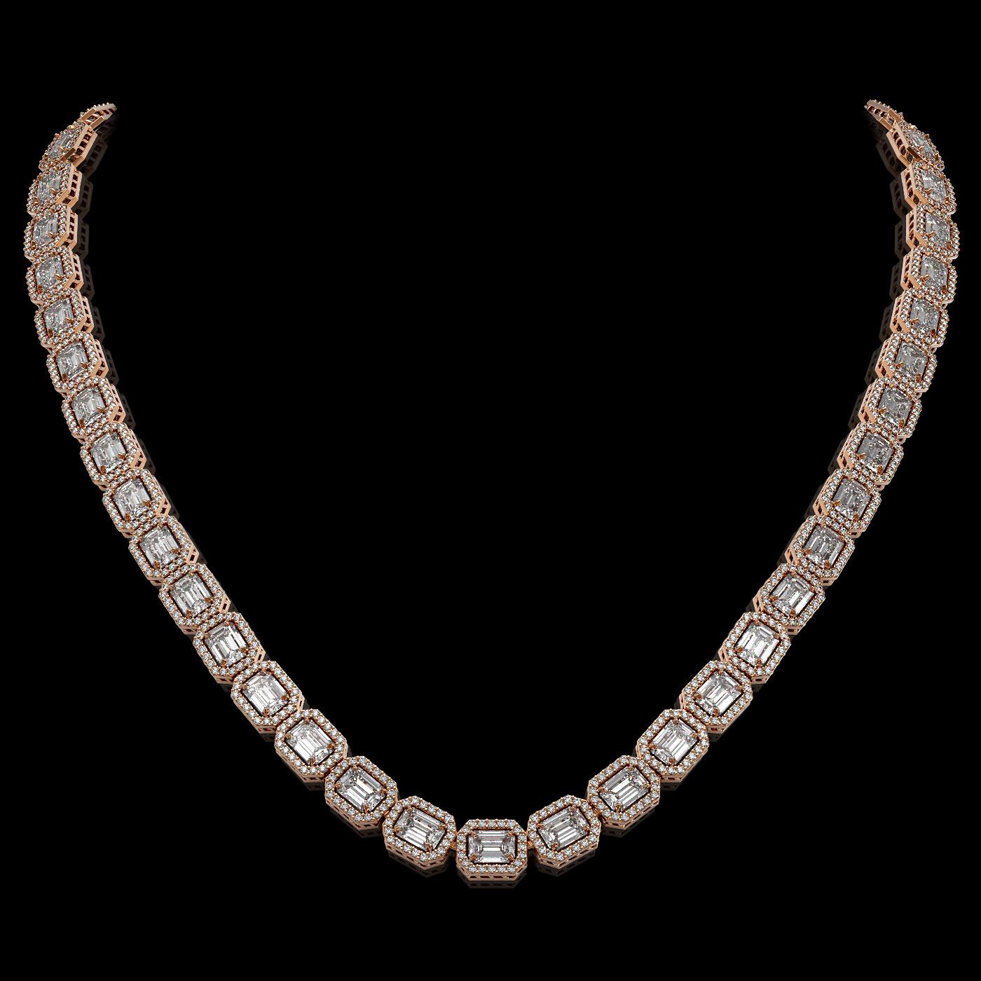 REF-6910H2A -42660 ---- 33.10 CTW Emerald Cut Diamond Designer Necklace 18K Rose Gold ---- Luxury Designer Brand Necklace Appraised at $304,050 Certificate Number US42660 18K Rose gold, Necklace Size is 16 Inches, Necklace measuring approx. 7 mm x 16 Inches, weighing in total approx. 46 grams. Made in the USA and is stamped 18K, Main stone 25.05 carat total weight containing 50 pieces of I-J color with VS/SI quality Emerald Cut shape cut Diamond , Stone #2 8.05 carat total weight containing 1000 pieces of G-H color with VS/SI quality Round shape cut Diamond