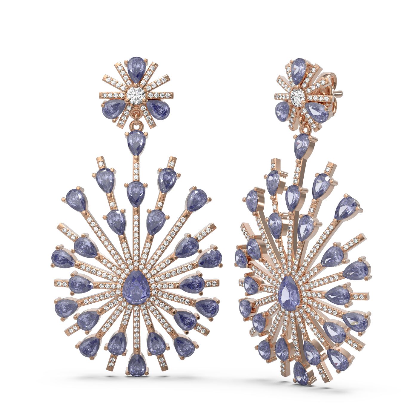 33.19 ctw Tanzanite & Diamond Earrings 18K Rose Gold