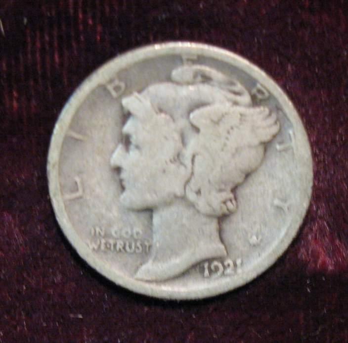 33. 1921 D Mercury Dime. Keydate. G-4. Red book $80.00