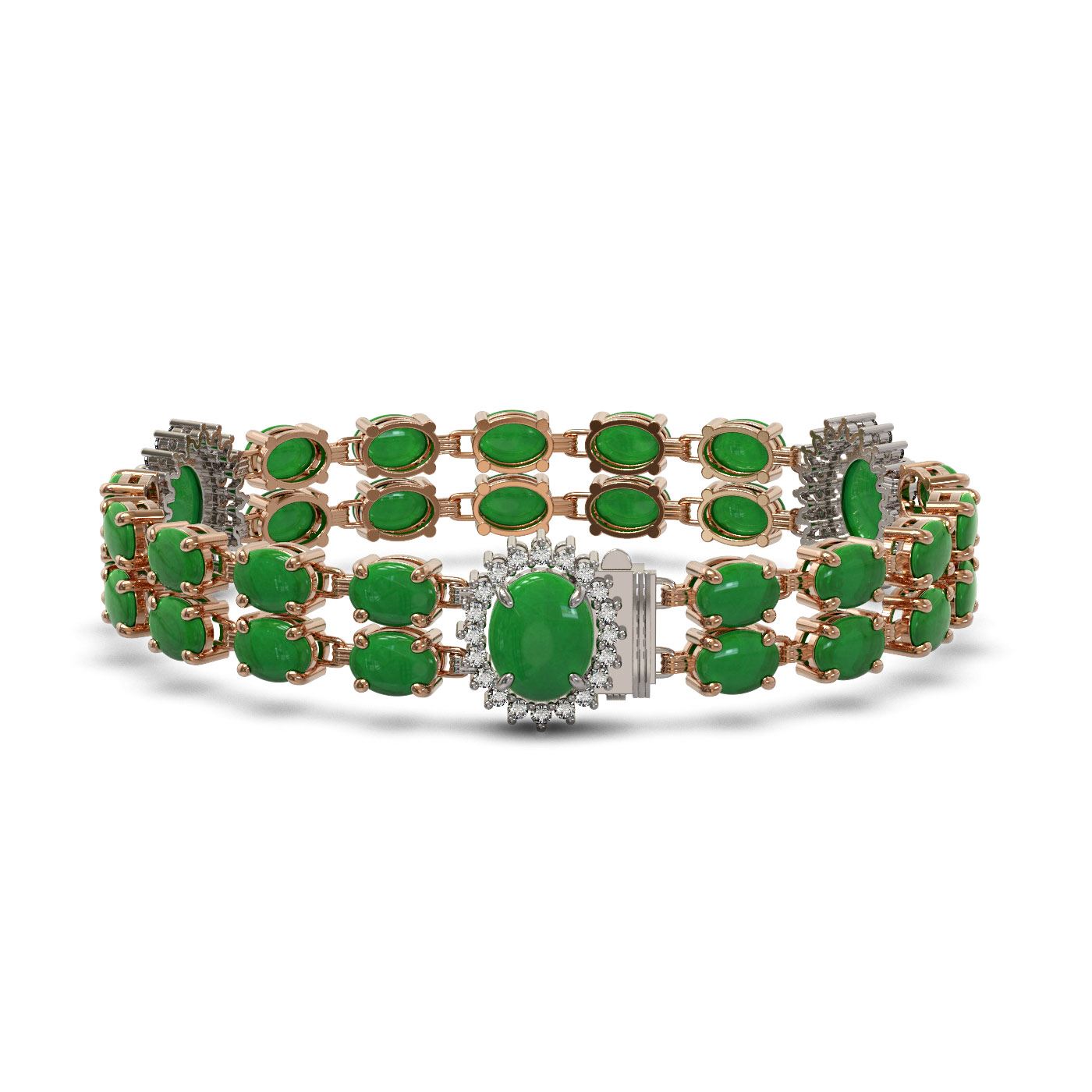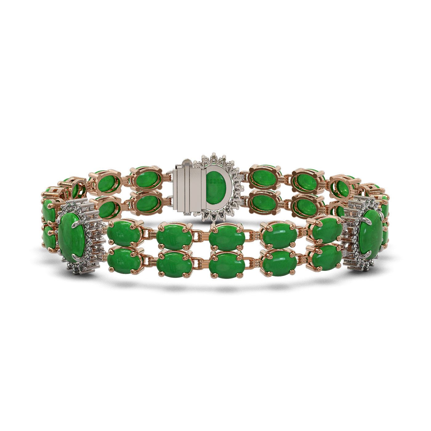 REF-354K5Y - SKU: 44451 ---- 33.27 ctw Jade & Diamond Bracelet 14K Rose Gold