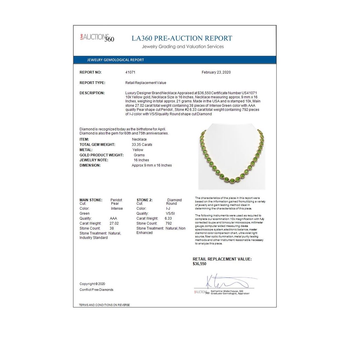 REF-664N2F - SKU: 41071 ---- 33.35 ctw Peridot & Diamond Micro Pave Halo Necklace 10k Yellow Gold