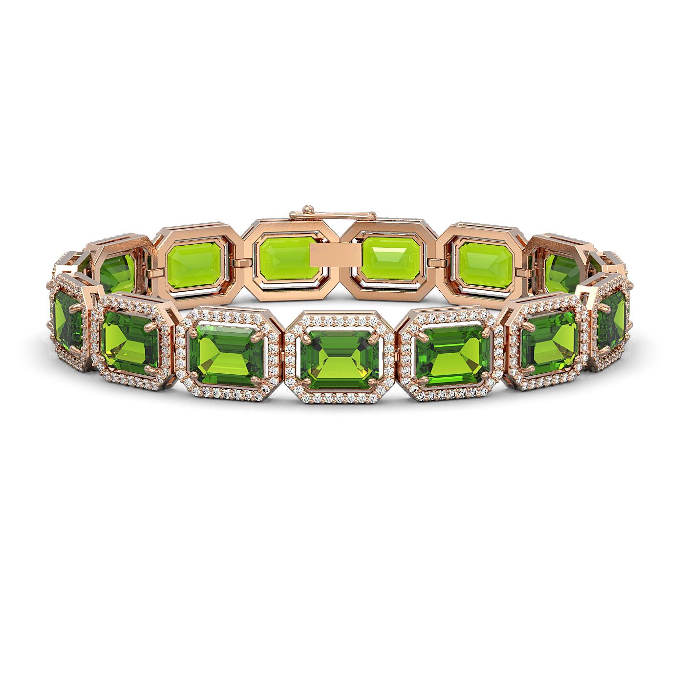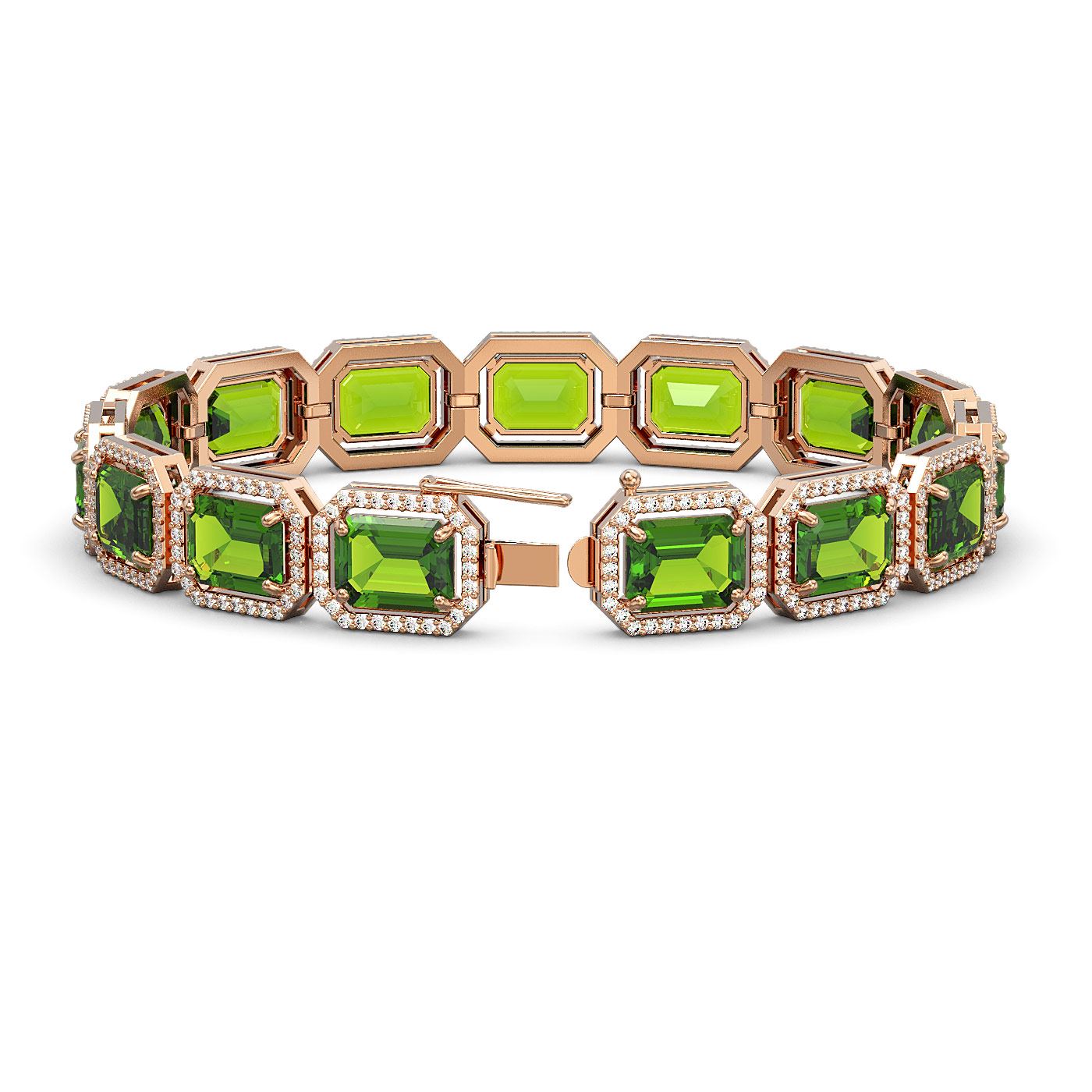 33.37 ctw Peridot & Diamond Halo Bracelet 10K Rose Gold