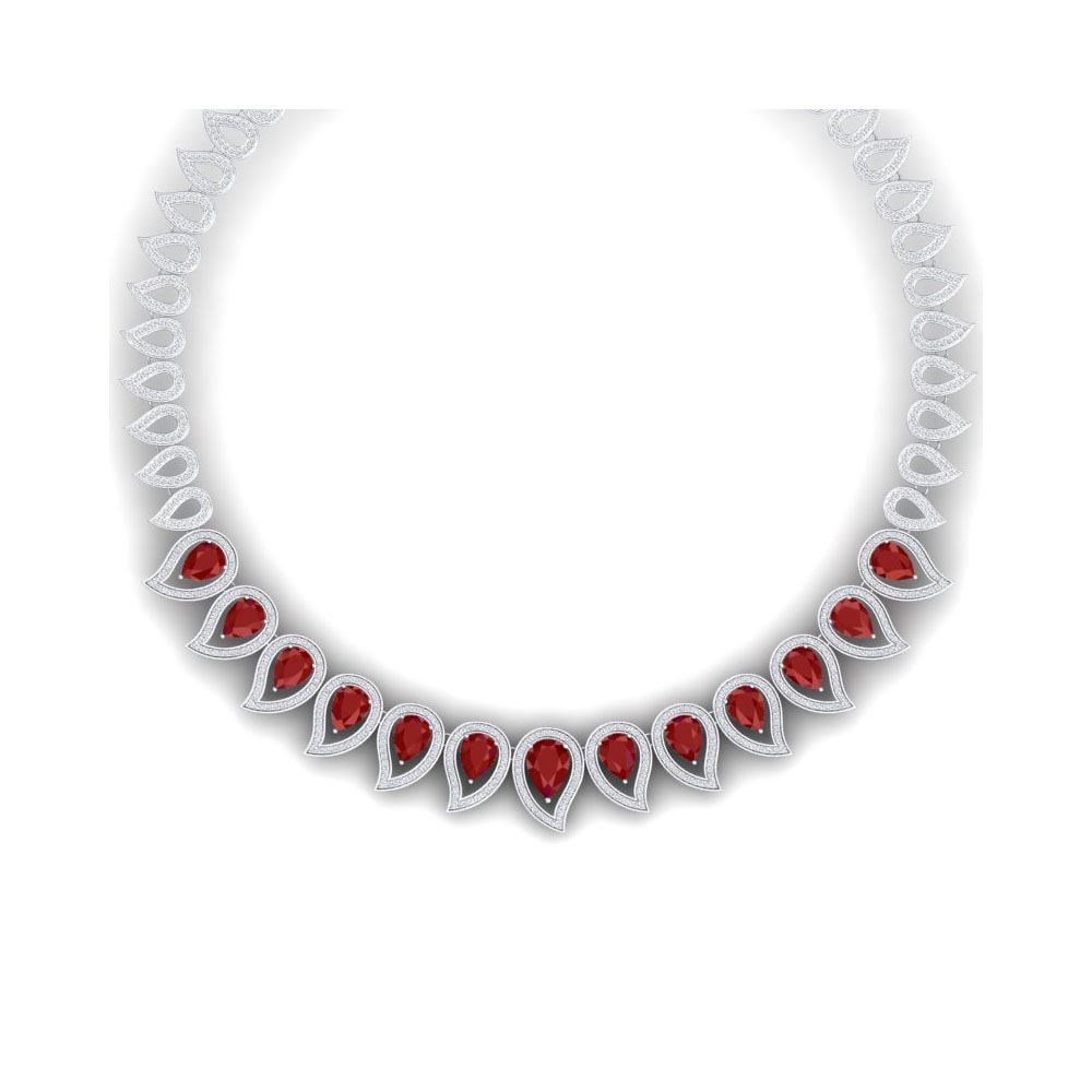 33.4 ctw Designer Ruby & VS Diamond Necklace 18K White Gold