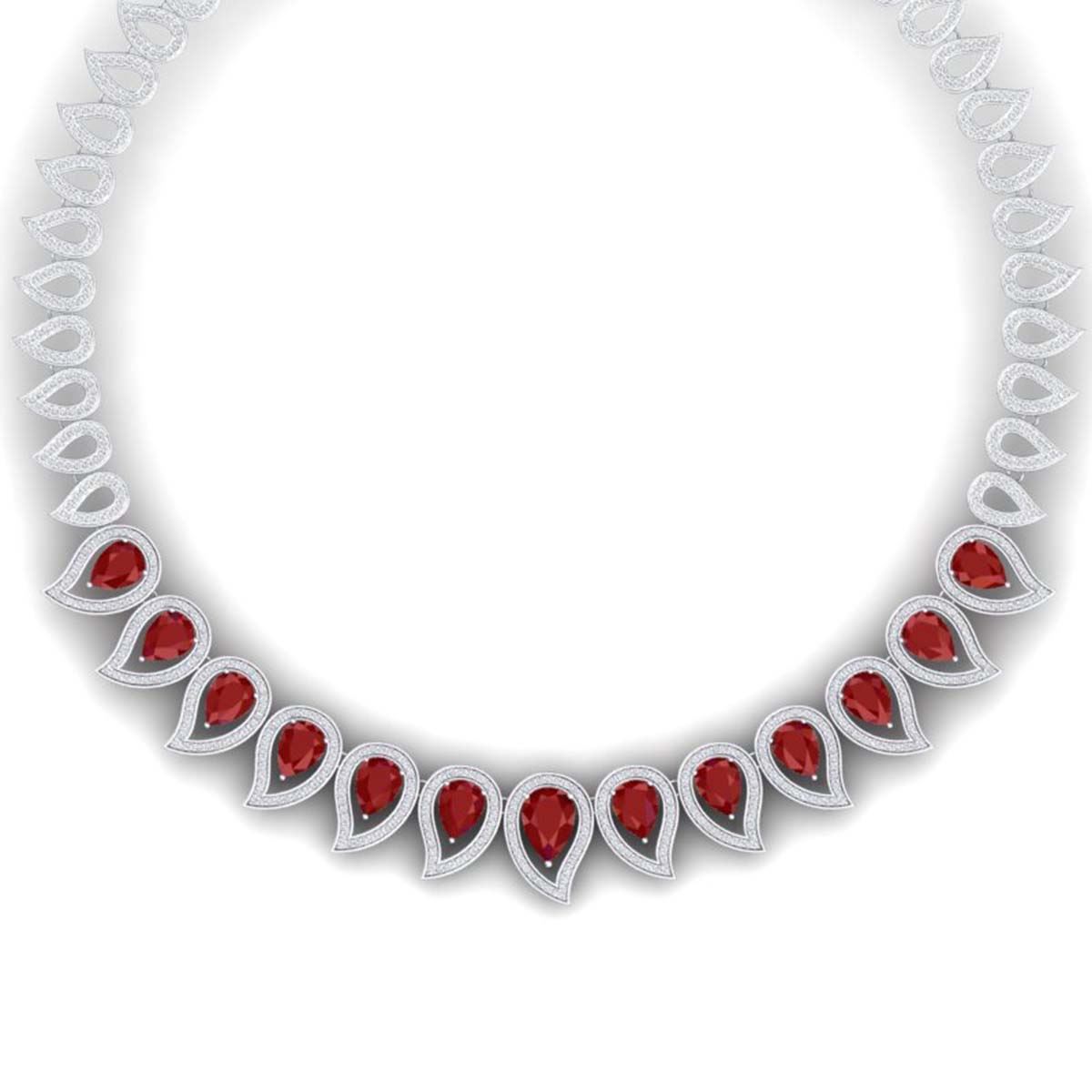 33.4 ctw Ruby & VS Diamond Necklace 18K White Gold