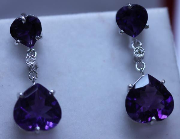 33.40 CTW AMETHYST AND DIAMOND EARRINGS .925 STERLING S **|**|** 33.40 CTW AMETHYST AND DIAMOND DANGLING EARRINGS .925 STERLING SILVER; CENTERSTONE 11.5 CTW; DIAMOND 0.03 CTW ; MSRP: $600