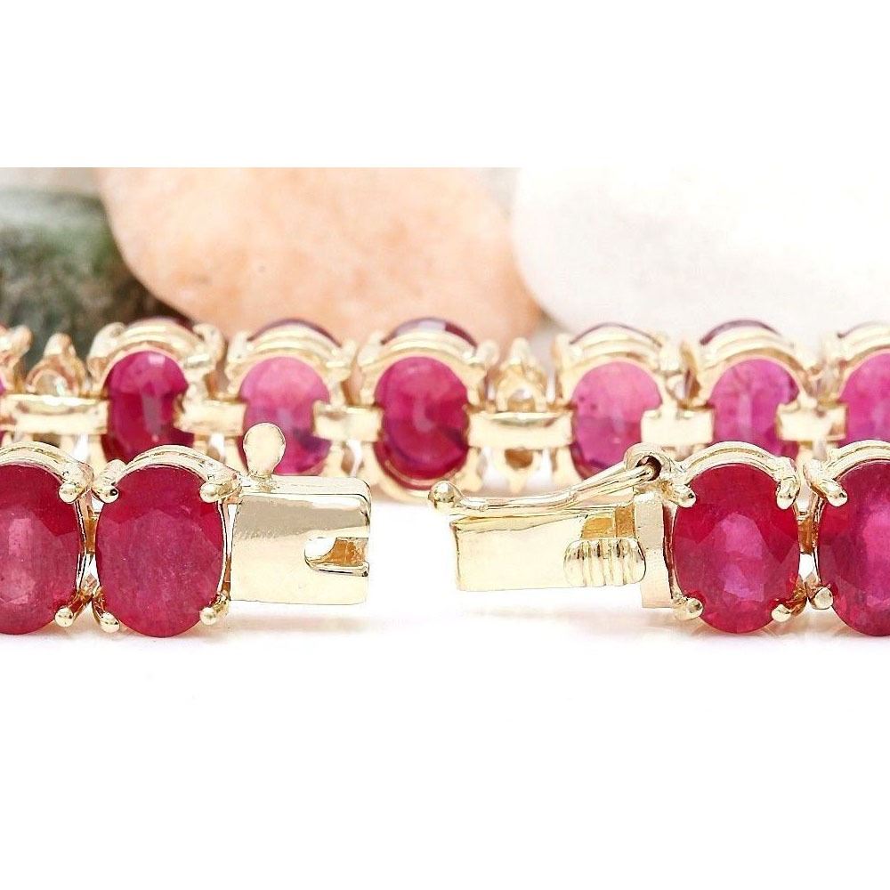 33.50 Carat Natural Ruby 18K Solid Yellow Gold Diamond Bracelet