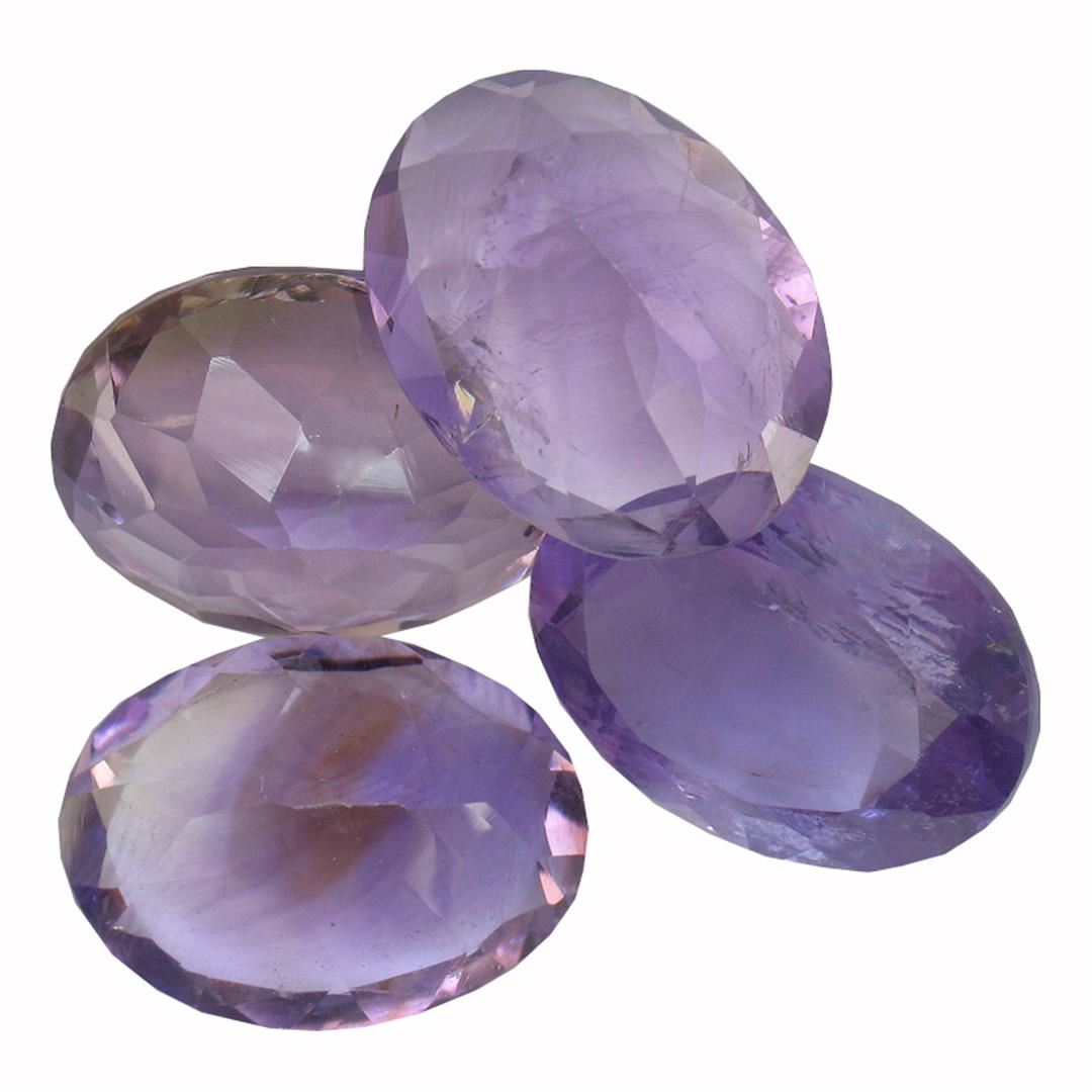 Four oval mixed cut natural amethysts exact total weight 33.55ct., clarity is slightly included, type II, medium dark, very slightly grayish, purple color, (GIA P 6/3), cut is good. Westfield Appraised at $1,165.00.