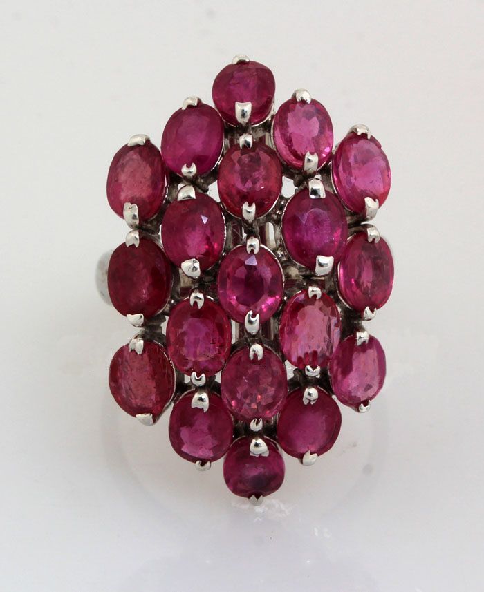 33.78CTW Pink Ruby Cluster Design Silver Ring **|**|** Cluster of Oval Shape Pink Ruby in Silver Ring; Size: 5x4mm; ctw: 9.50; stone count: 19; gram weight: 4.86; ring size: 8 ; MSRP: $400