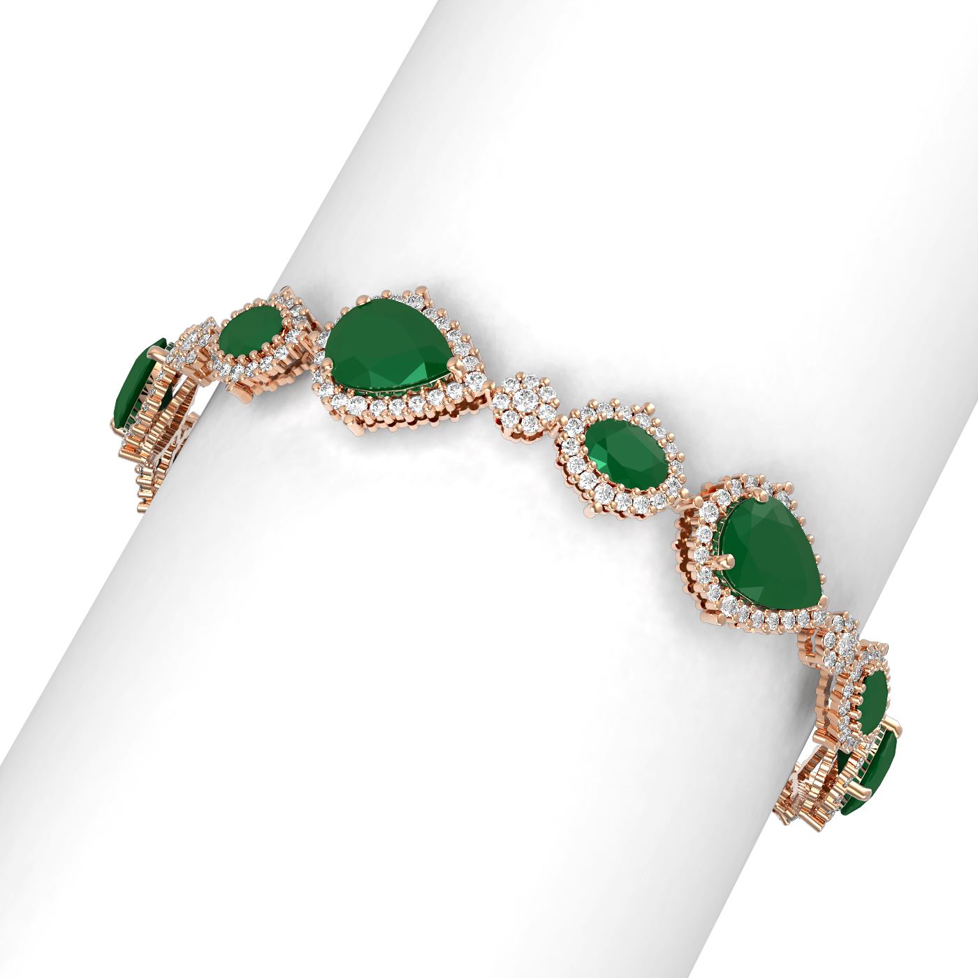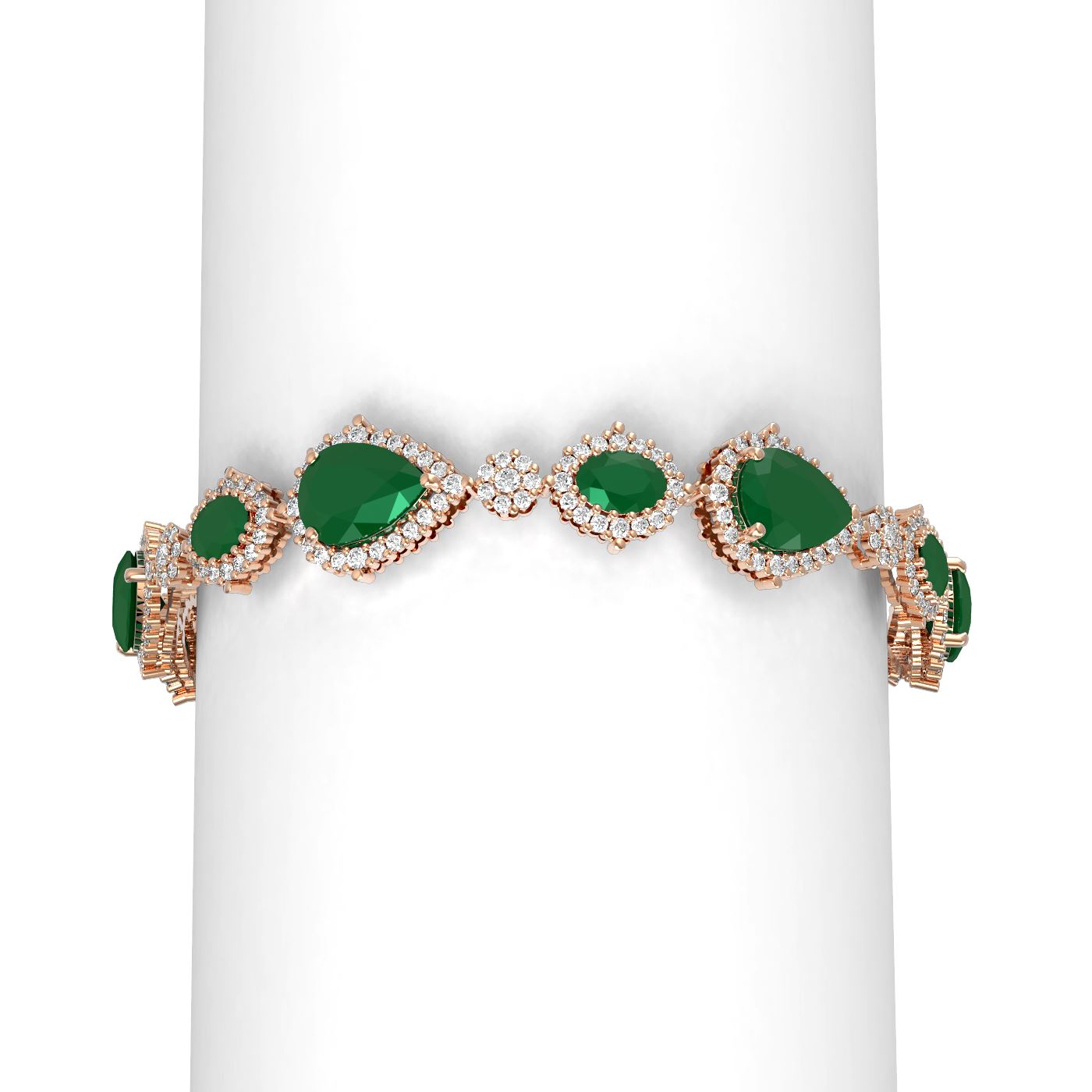 REF-656F9M - SKU: 51296 ---- 33.90 ctw Emerald & Diamond Bracelet 18K Rose Gold