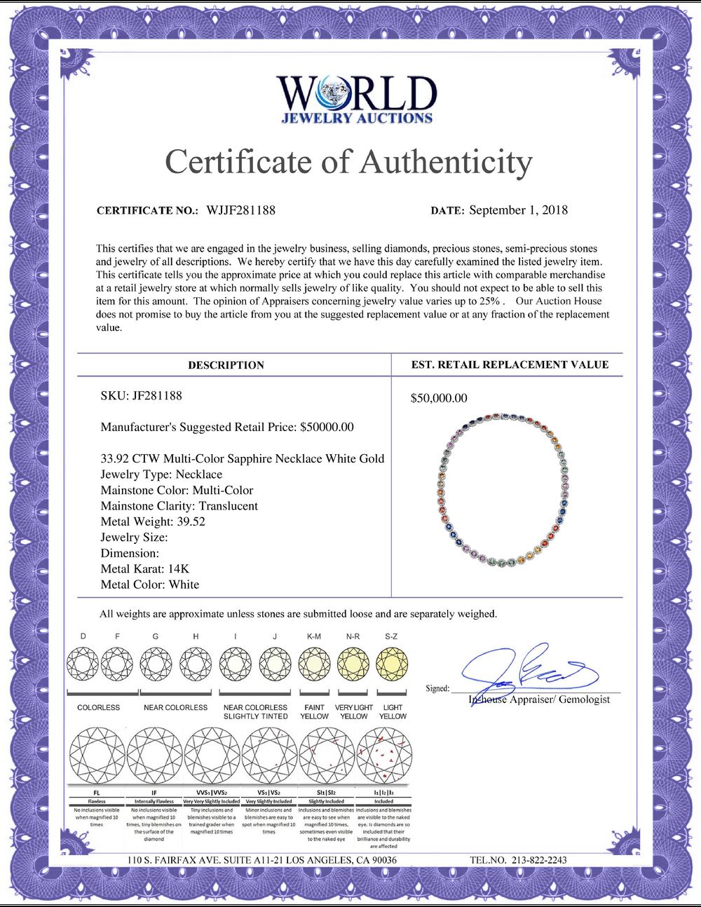 REF-664H4M - JF281188 ---- 33.92 CTW Multi-Color Sapphire & White Round Diamond Necklace 14K White Gold