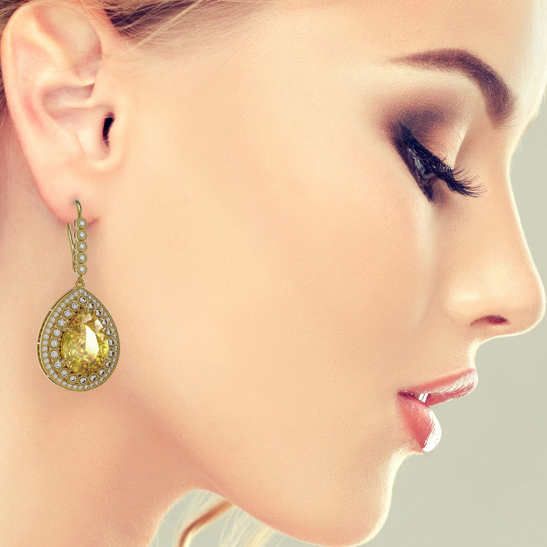 REF-446K9Y - SKU: 43312 ---- 33.92 ctw Canary Citrine & Diamond Victorian Earrings 14K Yellow Gold
