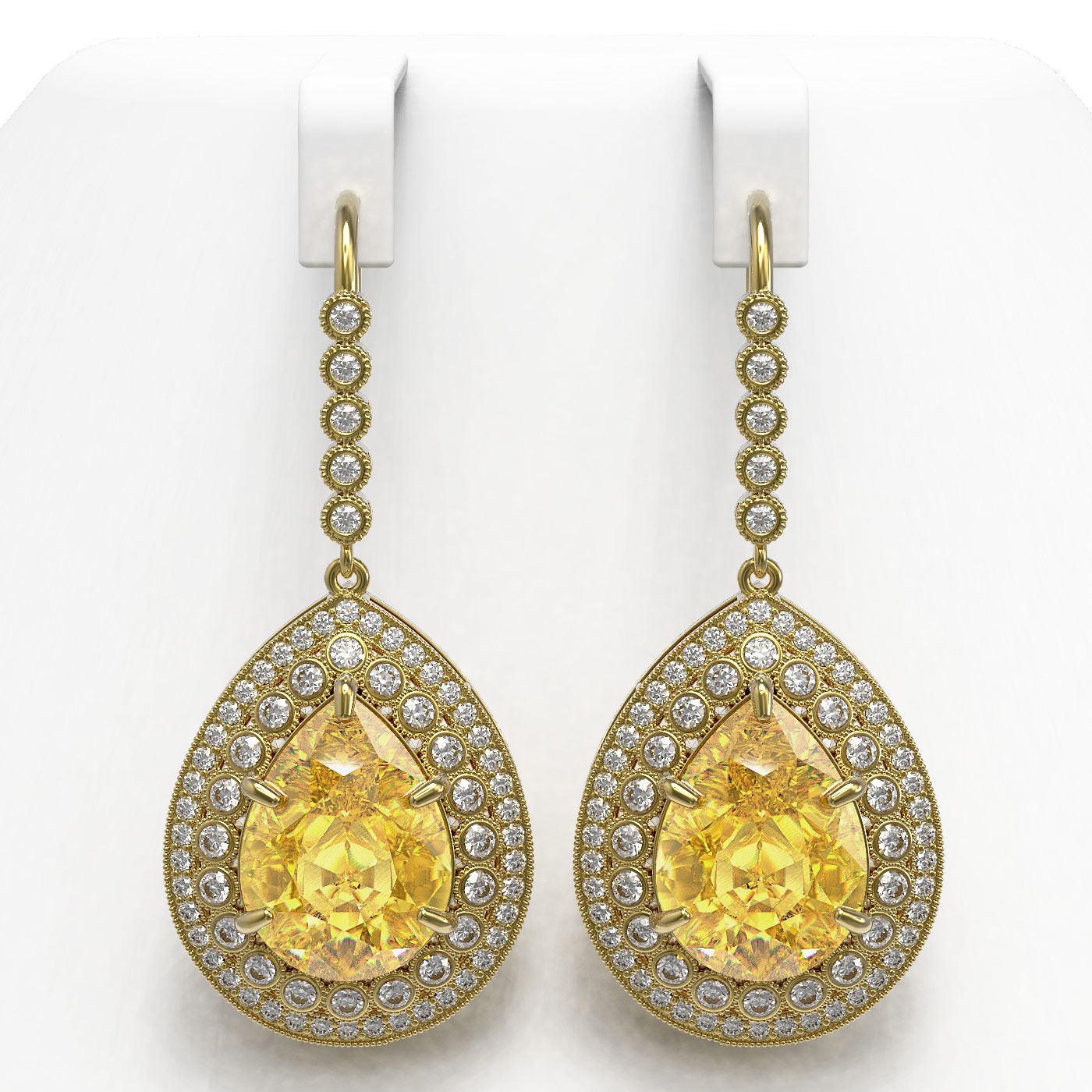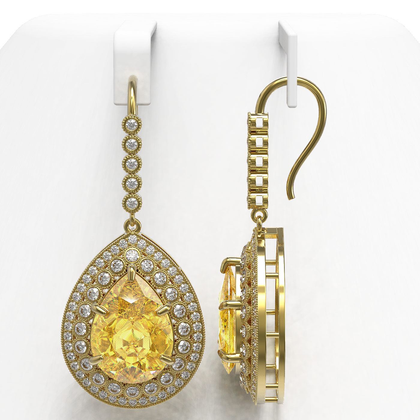 33.92 ctw Canary Citrine & Diamond Victorian Earrings 14K Yellow Gold