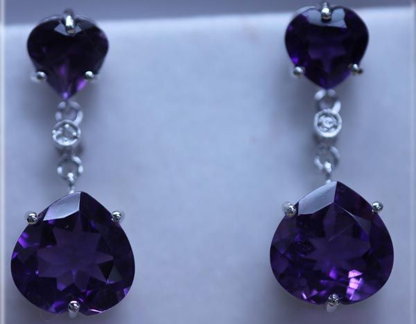 33.95 CTW AMETHYST AND DIAMOND EARRINGS .925 STERLING S **|**|** 33.95 CTW AMETHYST AND DIAMOND DANGLING EARRINGS .925 STERLING SILVER; CENTERSTONE 11.5 CTW; DIAMOND 0.03 CTW ; MSRP: $600