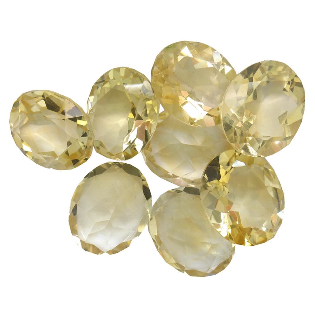 Eight oval mixed cut natural citrine quartzs exact total weight 33.90ct., clarity is eye clean, type I, medium, slightly brownish, yellowish orange color, (GIA yO 5/2), cut is good. Westfield Appraised at $1,110.00.