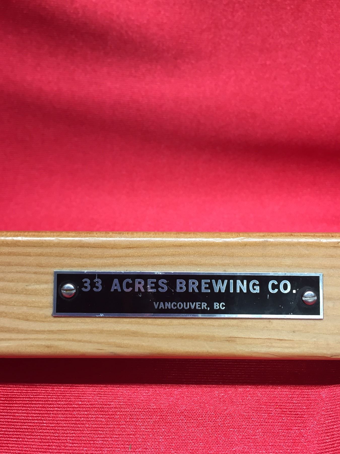 33 Acres Brewing Co. Craft Beer. From Vancouver BC. Beer Tap Handle