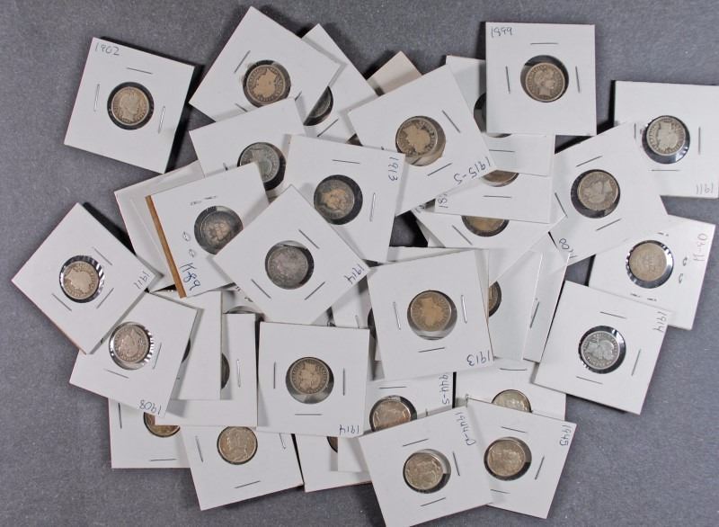 33-BARBER DIMES & 7-MERCURY DIMES, MIXED DATES INCLUDES 1892 & 95 BARBER DIMES