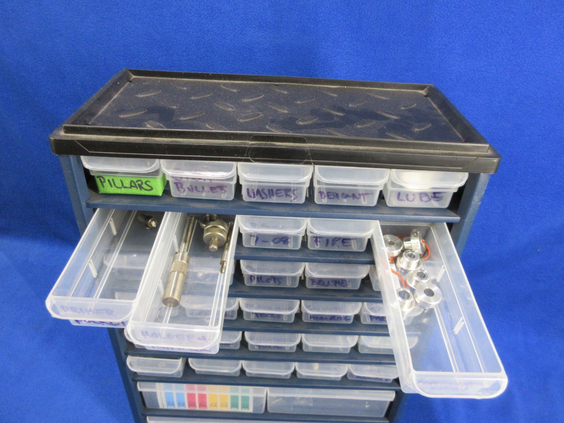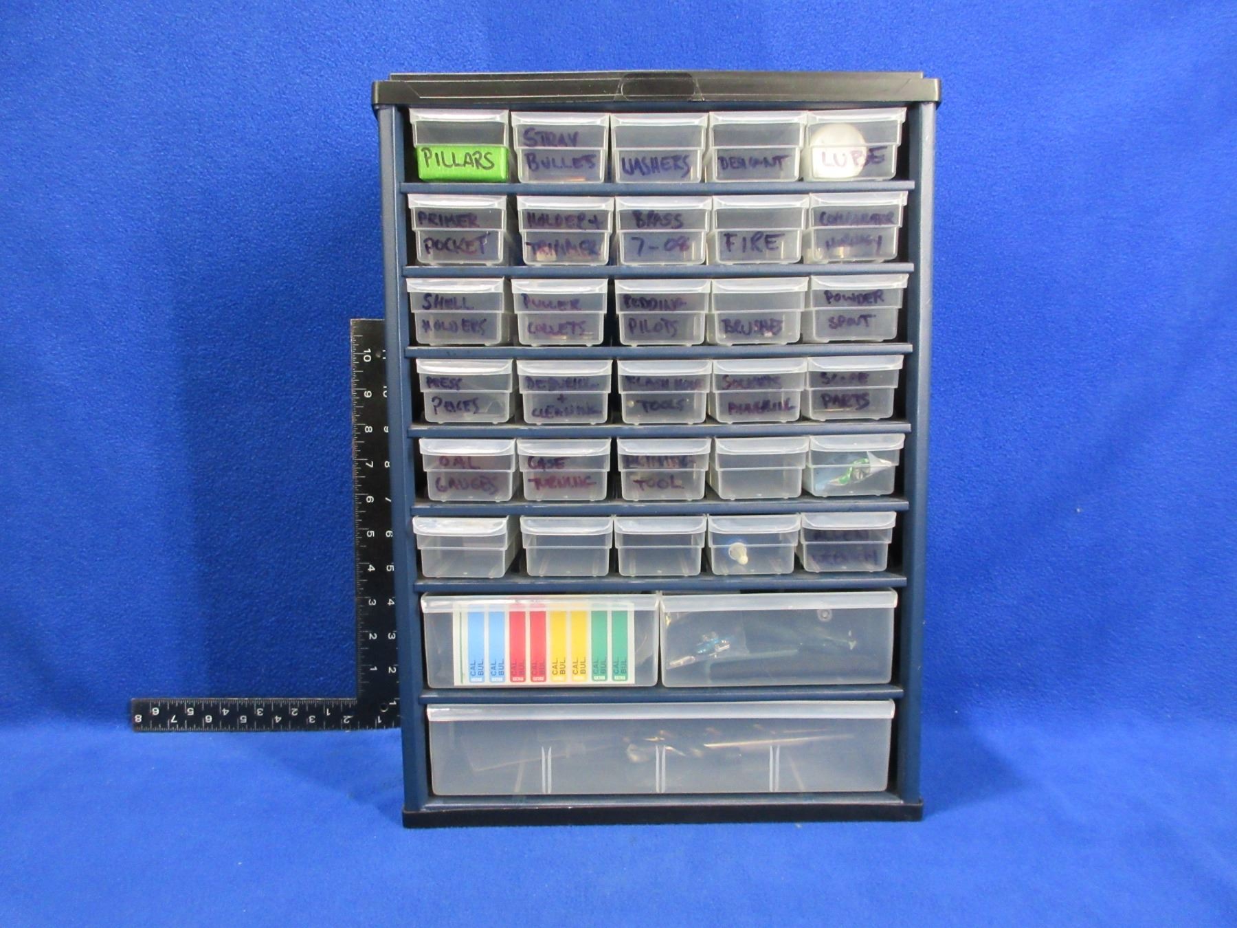 33 Drawer Plastic Cabinet with Misc. Tools and Hardware