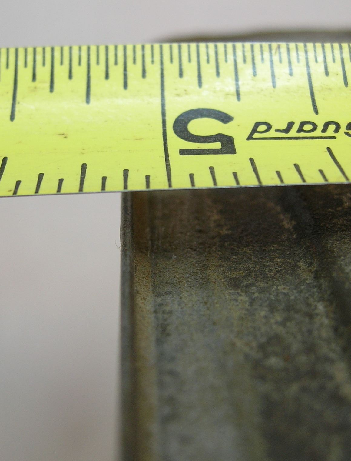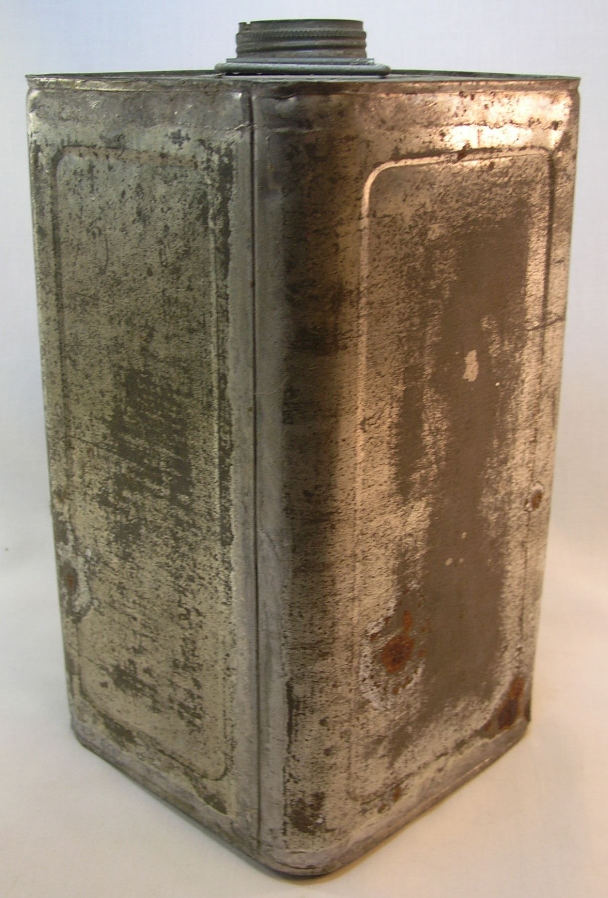 Tin is square and measures 9 in height to the top rim. Has its original screw cap and bail. It also measures 5 1/8 in. square.