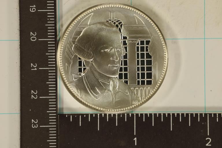 MERCHANT MASSACHUSETTS. OFFICIAL MEDAL OF BICENTENNIAL COUNCIL OF THE 13 ORIGINAL STATES. EDGE MARKED, IN HARD PLASTIC CAPSULE