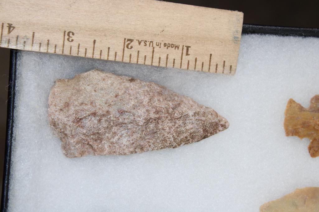 33 Native American ARROWHEADS in a Display Case with Glass. They measure 1.5" to 3" Long. They have been displayed in a 16" Wide x 12" Tall Case with Glass. (ONE$) ARROWHEADS *While these arrowheads came from an estate of a long-time collector; we as the auction company are not going to get into a protracted discussion about age and authenticity. This collector has no paperwork or COA as to age or authenticity. While we believe the vast majority; if not all to be old; we are wholly uncomfortable with an argument with qualified and unqualified, alleged authorities. All of that to say; we are not guaranteeing age or authenticity*