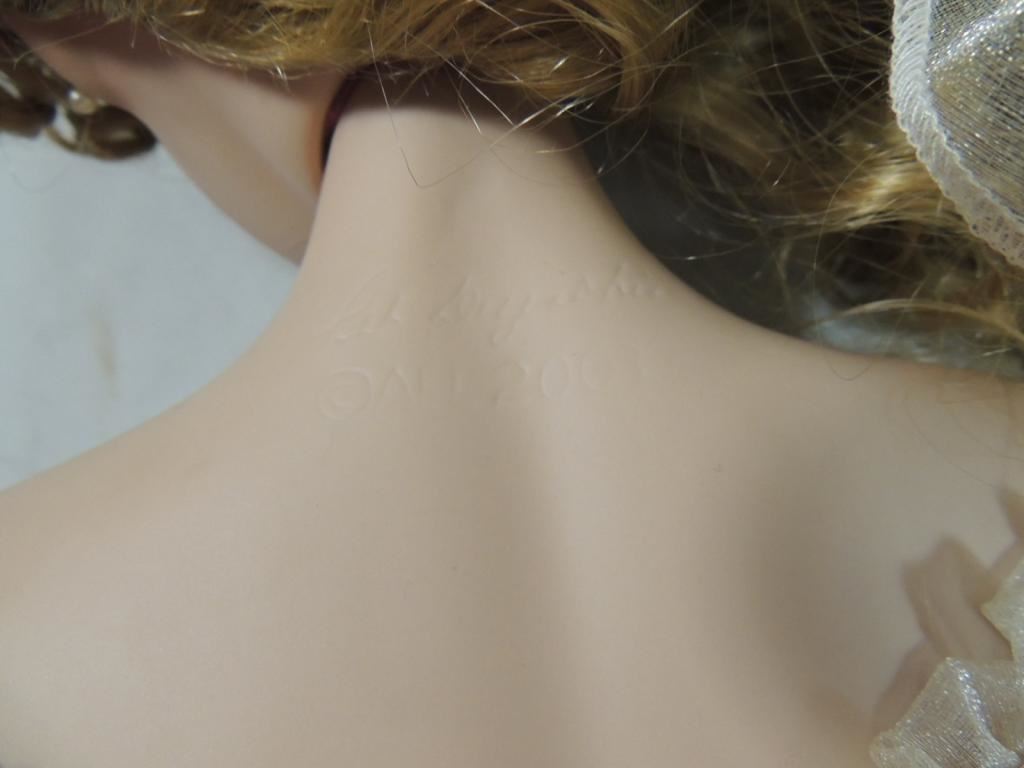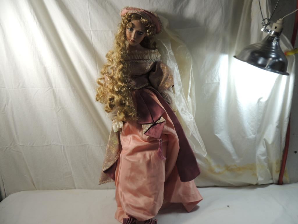RETIRED DOLL, PARADISE GALLERY DOLLS, 33" TALL SIGNED RENAISSANCE PORCELAIN DOLL PINK ROSE DRESS, LONG BLONDE HAIR LIGHT GREY BLUE EYES. COLLECTIBLE GOOD CONDITION AS SHWON SEE PHOTO FOR MORE DETAILS.