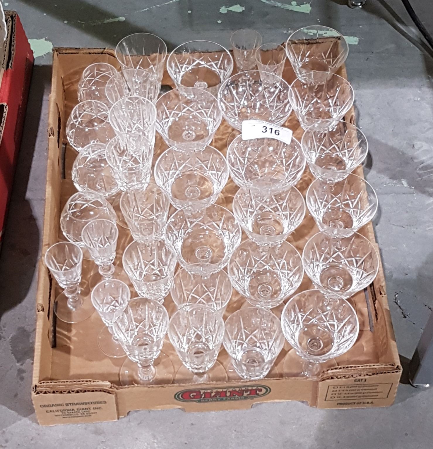 33 PCS VINTAGE CROSS & OLIVE CRYSTAL STEMWARE