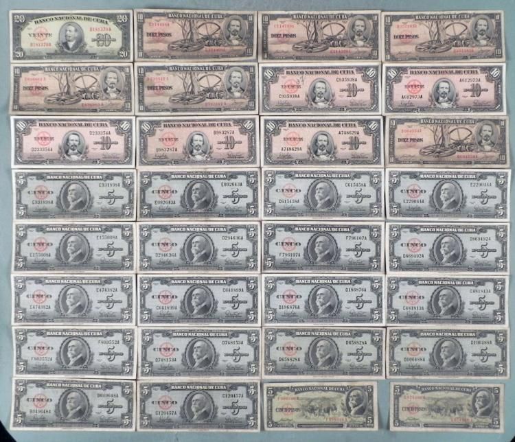 33 Pcs of Old Cuban Currency 1949-1960 * * one not shown