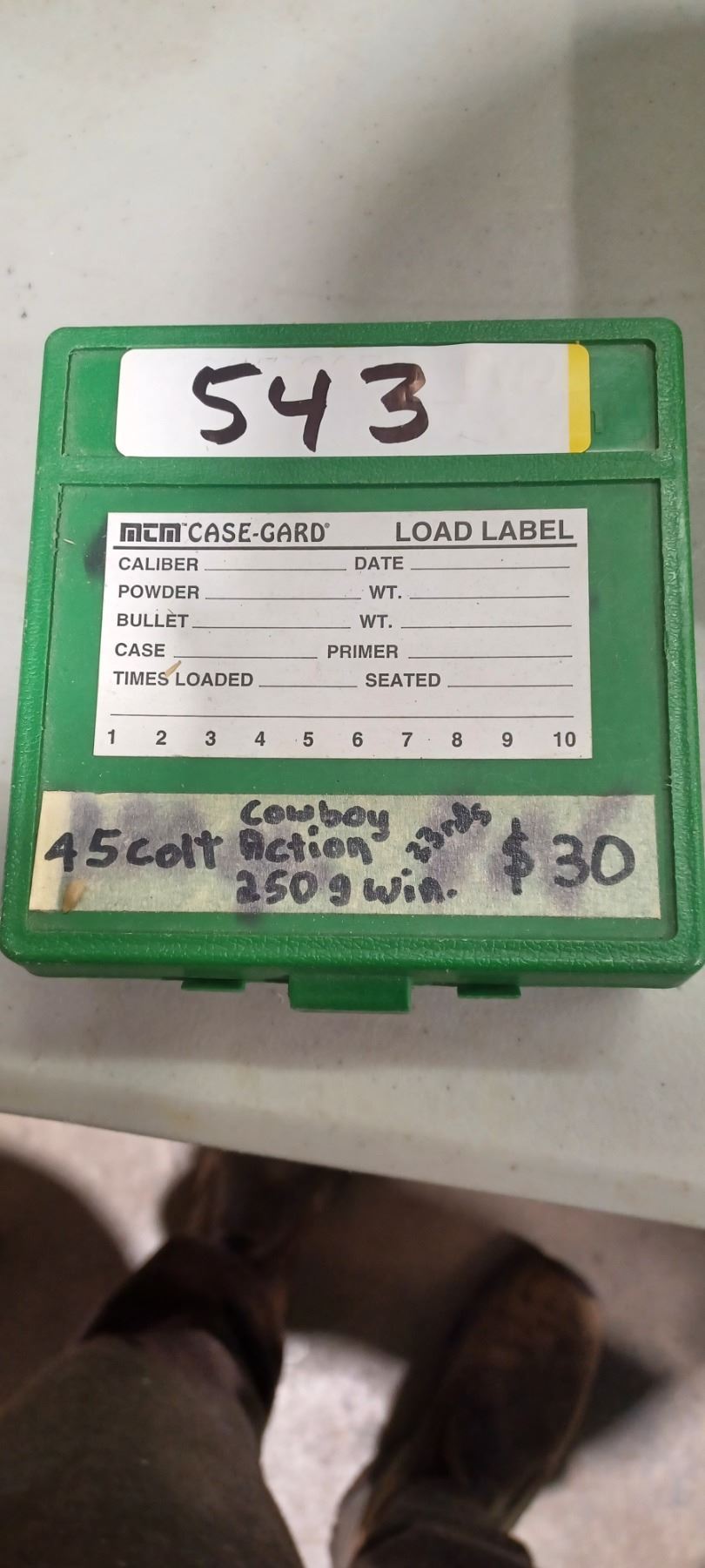 33 ROUNDS OF 45 COLT COWBOY ACTION  250 GRAIN AMMO C/W WITH AMMO CASE