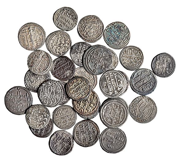 33 quirates almorávides: V-1775 (6), v-1768 (3), v-1822 (6), V-1824(2), V-1826 (5), V-1827 (4), V-1885- (3) y 1895 (4). MBC/MBC+.