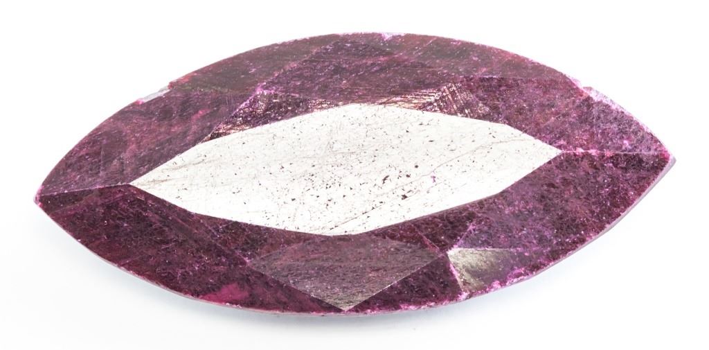 331.15 ct marquise cut red natural ruby. Accompanied with GLI certificate. 69.40 x 31.00 x 16.00 mm.