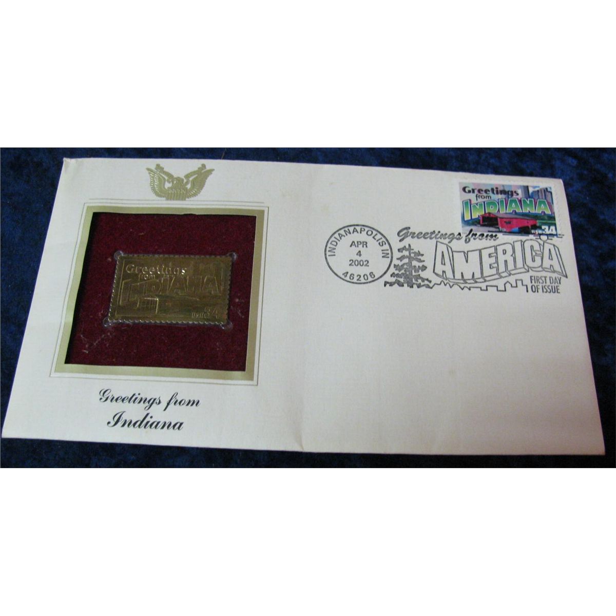 331. 2002 Indianapolis, Ind. First Day of Issue Cover with 22K Gold Replica Indiana Stamp.