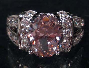 3312 - WHITE GOLD PLATED PINK SAPPHIRE AND TOPAZ RING SIZE 8