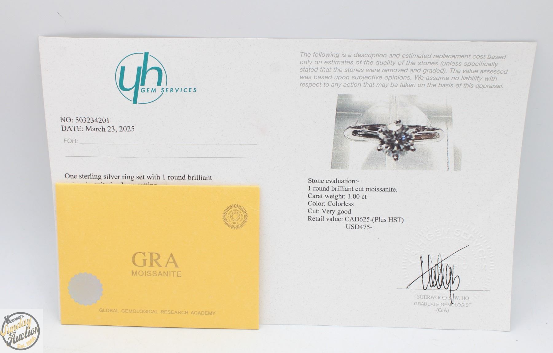 CUT MOISSANITE STONE VVS D COLOR SET IN 6 CLAW HEAD SET IN 925 SILVER RING SIZE 7 RETAIL VALUE $625.00 **ALL ITEMS MUST BE REMOVED BY 5PM SATURDAY, NOVEMBER 8th 2025. ALL REMAINING ITEMS WILL BE SUBJECT TO A $6.00 PER DAY STORAGE CHARGE. ANY ITEMS REMAINING AFTER MONDAY, NOVEMBER 24TH 2025 WILL BE CONSIDERED FORFEITED. NO REFUNDS WILL BE ISSUED FOR FORFEITED ITEMS. TO SCHEDULE A PICK UP APPOINTMENT CLICK HERE