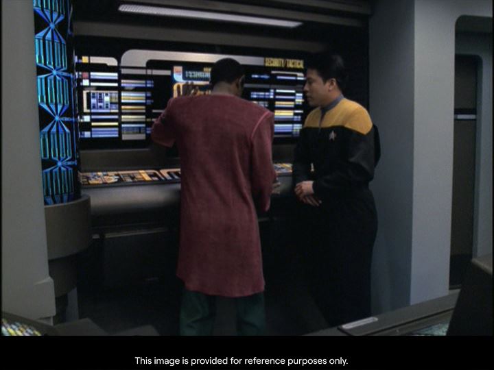 STAR TREK: VOYAGER (T.V. SERIES, 1995 - 2001) - Michael and Denise Okuda Collection: Tactical Console LCARS Panel - A Tactical console LCARS panel from the television series Star Trek: Voyager. Chief of security and chief tactical officer Tuvok (Tim Russ) and other personnel monitored sensors and shields from the Security/Tactical console on Voyager's bridge.