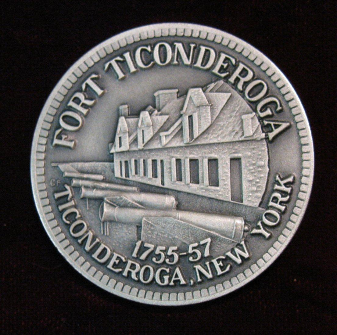 334. "Lake Champlain/Fort Ticonderoga", "Fort Ticonderoga/1755-57 Ticonderoga, New York" Contains 1.1175 ozs. .999 Fine Silver. First Edition American Mint Association. Matte finish. 39mm.