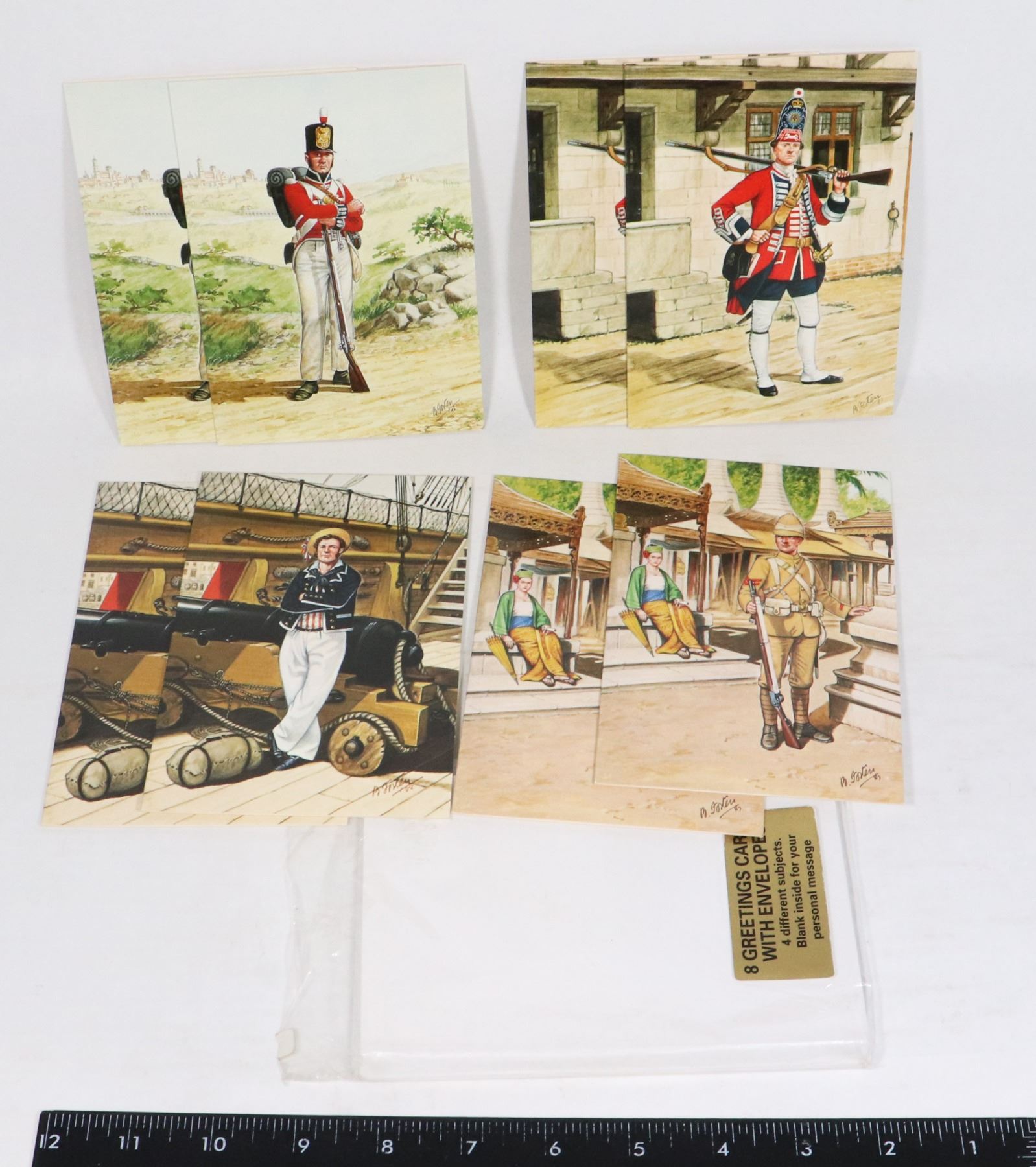 IN ORIGINAL OPENED PACKAGE WITH ENVELOPES 4 DIFFERENT POSTCARDS 8 TOTAL BRITISH MILITARY FORCES