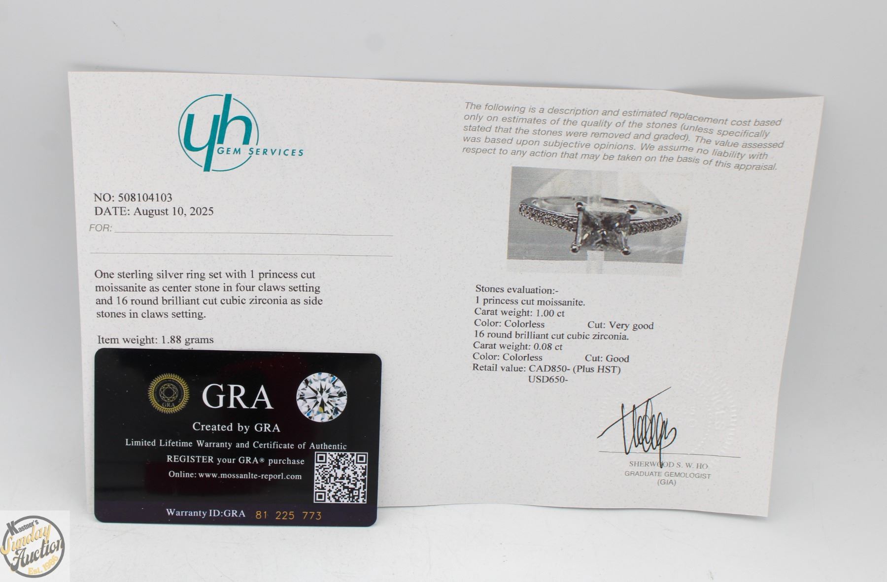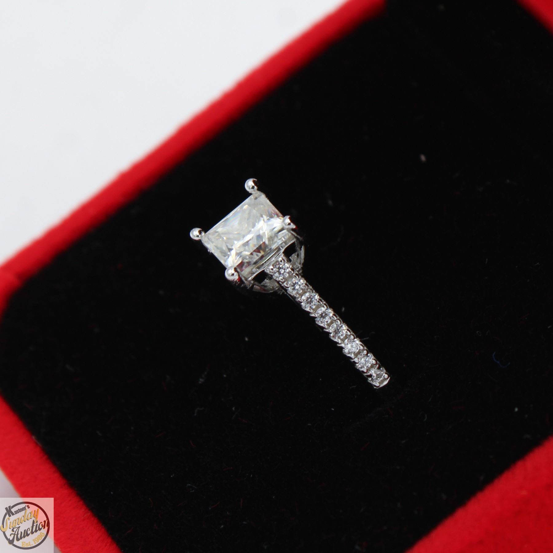 MOISSANITE STONE VVS D COLOR WITH 16 ROUND BRILLIANT CUT CUBIC ZIRCONIA SET IN SHANKS SET IN 925 SILVER RING SIZE 6.25 RETAIL VALUE $850.00 **ALL ITEMS MUST BE REMOVED BY 5PM SATURDAY, NOVEMBER 29TH 2025. ALL REMAINING ITEMS WILL BE SUBJECT TO A $6.00 PER DAY STORAGE CHARGE. ANY ITEMS REMAINING AFTER MONDAY, DECEMBER 15TH 2025 WILL BE CONSIDERED FORFEITED. NO REFUNDS WILL BE ISSUED FOR FORFEITED ITEMS. TO SCHEDULE A PICK UP APPOINTMENT CLICK HERE