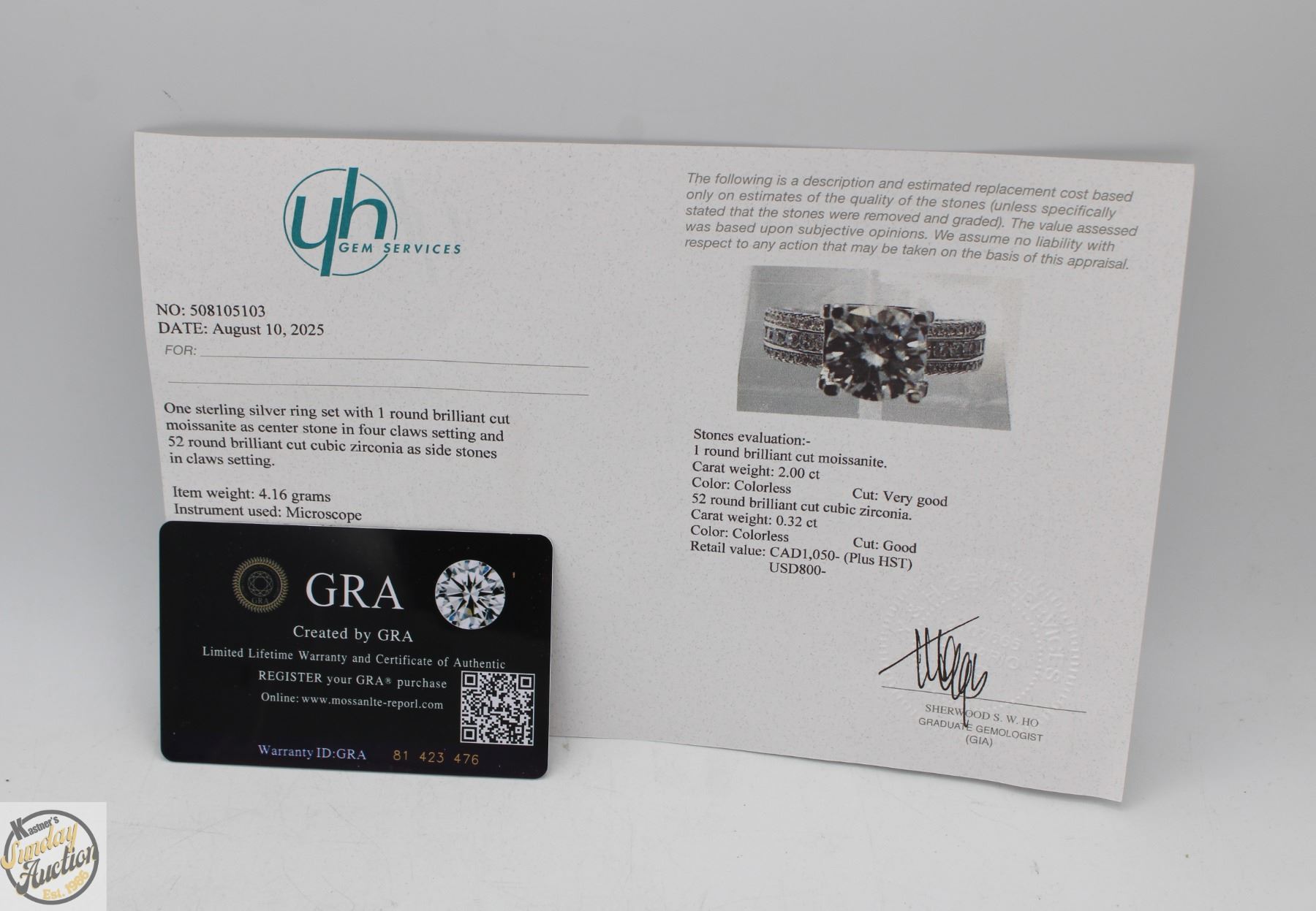 MOISSANITE STONES VVS D COLOR WITH 52 ROUND BRILLIANT CUT CUBIC ZIRCONIA WITH LARGER SIZE SET IN CENTER ROW WITH SMALLER SIZE SET ON EITHER SIDE SET IN 925 SILVER RING SIZE 6 RETAIL VALUE $1,050.00 **ALL ITEMS MUST BE REMOVED BY 5PM SATURDAY, NOVEMBER 29TH 2025. ALL REMAINING ITEMS WILL BE SUBJECT TO A $6.00 PER DAY STORAGE CHARGE. ANY ITEMS REMAINING AFTER MONDAY, DECEMBER 15TH 2025 WILL BE CONSIDERED FORFEITED. NO REFUNDS WILL BE ISSUED FOR FORFEITED ITEMS. TO SCHEDULE A PICK UP APPOINTMENT CLICK HERE