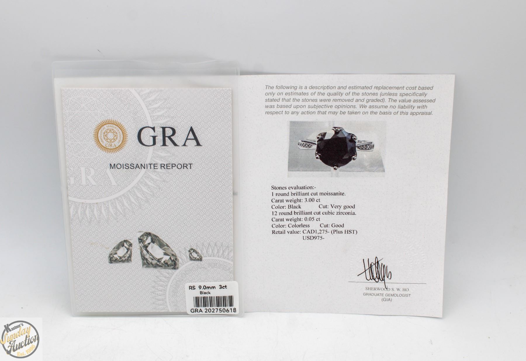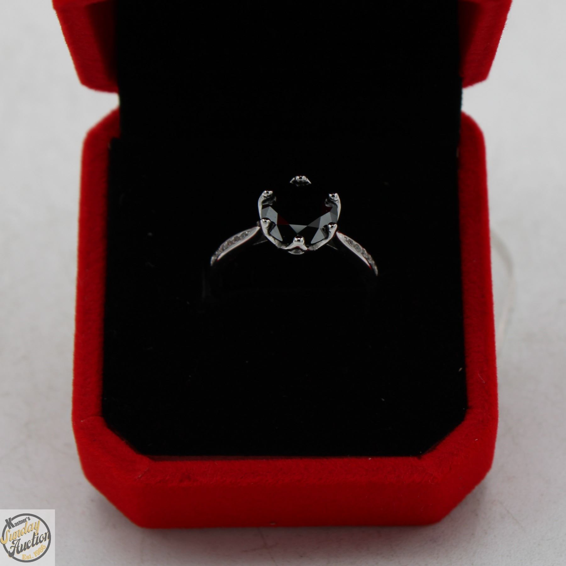 MOISSANITE STONE VVS BLACK COLOR WITH 12 ROUND BRILLIANT CUT CUBIC ZIRCONIA SET IN SHANKS SET IN 925 SILVER RING SIZE 7.25 RETAIL VALUE $1,275.00 **ALL ITEMS MUST BE REMOVED BY 5PM SATURDAY, NOVEMBER 29TH 2025. ALL REMAINING ITEMS WILL BE SUBJECT TO A $6.00 PER DAY STORAGE CHARGE. ANY ITEMS REMAINING AFTER MONDAY, DECEMBER 15TH 2025 WILL BE CONSIDERED FORFEITED. NO REFUNDS WILL BE ISSUED FOR FORFEITED ITEMS. TO SCHEDULE A PICK UP APPOINTMENT CLICK HERE