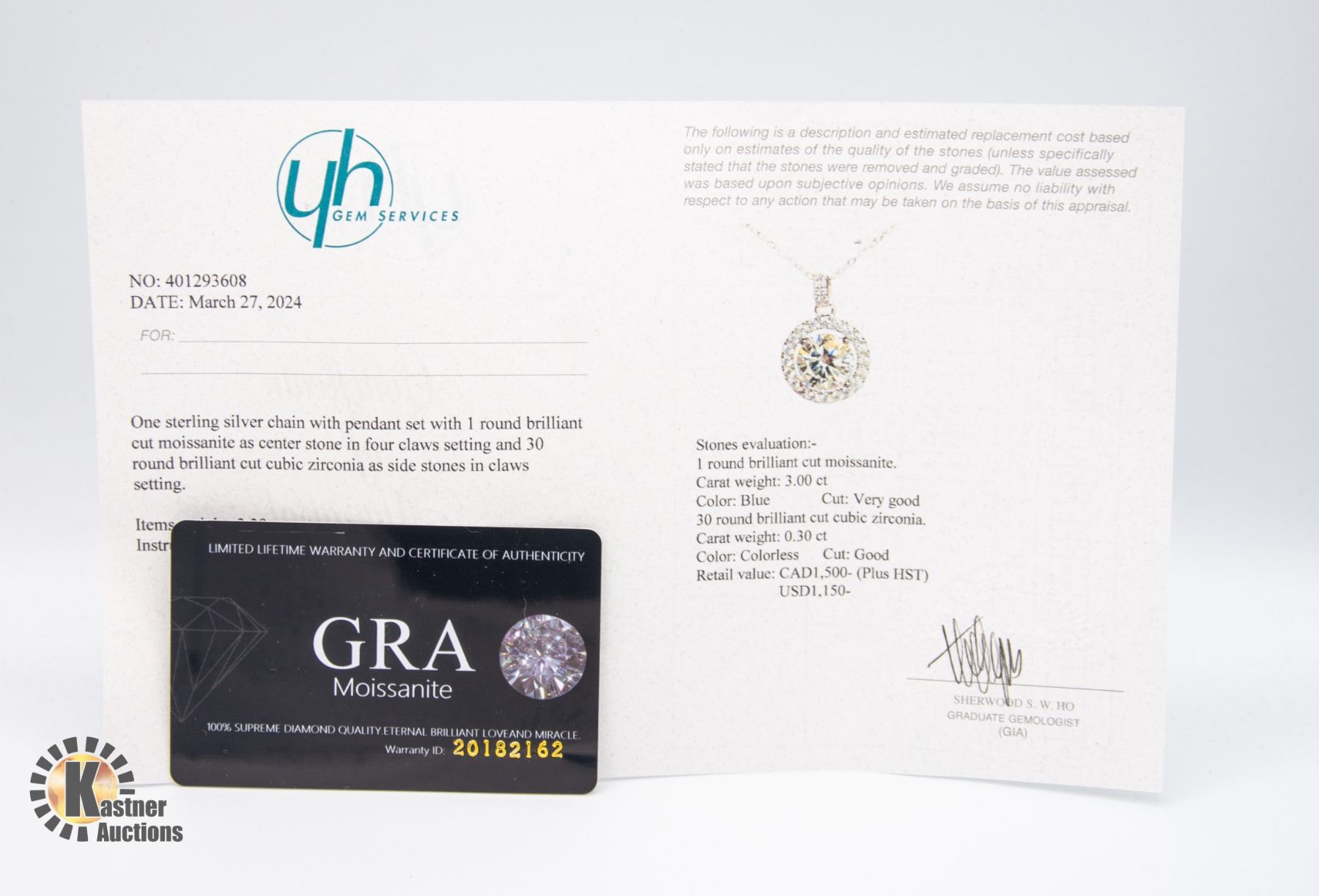 MOISSANITE STONE VVS D COLOR SET IN 925 SILVER PENDANT RETAIL VALUE $1,500.00 **ALL ITEMS MUST BE REMOVED BY 5PM SATURDAY, JULY 27TH 2024. ALL REMAINING ITEMS WILL BE SUBJECT TO A $6.00 PER DAY STORAGE CHARGE. ANY ITEMS REMAINING AFTER MONDAY, AUGUST 12TH, 2024 WILL BE CONSIDERED FORFEITED. NO REFUNDS WILL BE ISSUED FOR FORFEITED ITEMS. TO SCHEDULE A PICK UP APPOINTMENT CLICK HERE