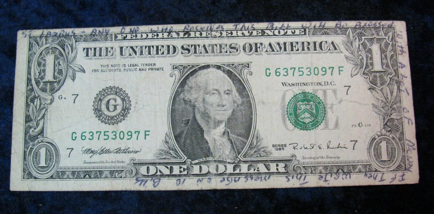 337. Series 1995 "Lazarus" $1 Federal Reserve Note. Interesting.