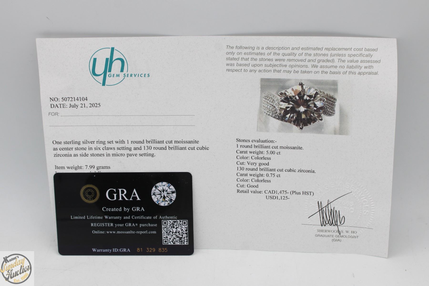 MOISSANITE STONE VVS D COLOR SET WITH 130 ROUND BRILLIANT CUT CUBIC ZIRCONIA’S SET IN 925 SILVER RING SIZE 7.75 RETAIL VALUE $1,475.00 **ALL ITEMS MUST BE REMOVED BY 5PM SATURDAY, NOVEMBER 29TH 2025. ALL REMAINING ITEMS WILL BE SUBJECT TO A $6.00 PER DAY STORAGE CHARGE. ANY ITEMS REMAINING AFTER MONDAY, DECEMBER 15TH 2025 WILL BE CONSIDERED FORFEITED. NO REFUNDS WILL BE ISSUED FOR FORFEITED ITEMS. TO SCHEDULE A PICK UP APPOINTMENT CLICK HERE