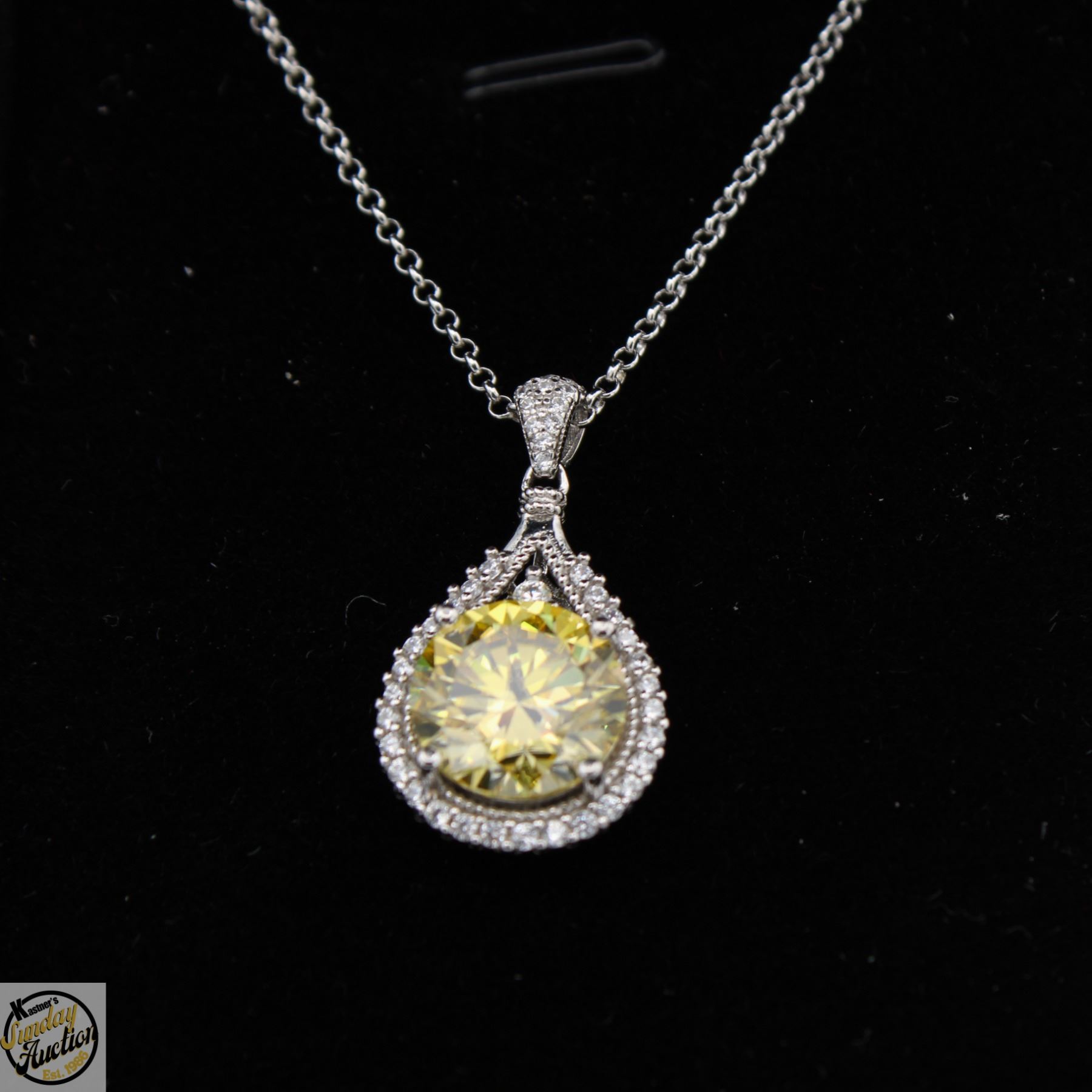 ROUND BRILLIANT CUT MOISSANITE STONE VVS LEMON YELLOW COLOR SET IN CENTER WITH 40 ROUND BRILLIANT CUT CUBIC ZIRCONIA SET ON TEAR DROP PENDANT AND IN BALE SET IN 925 SILVER PENDANT **ALL ITEMS MUST BE REMOVED BY 5PM SATURDAY, NOVEMBER 1ST 2025. ALL REMAINING ITEMS WILL BE SUBJECT TO A $6.00 PER DAY STORAGE CHARGE. ANY ITEMS REMAINING AFTER MONDAY, NOVEMBER 17TH 2025 WILL BE CONSIDERED FORFEITED. NO REFUNDS WILL BE ISSUED FOR FORFEITED ITEMS. TO SCHEDULE A PICK UP APPOINTMENT CLICK HERE
