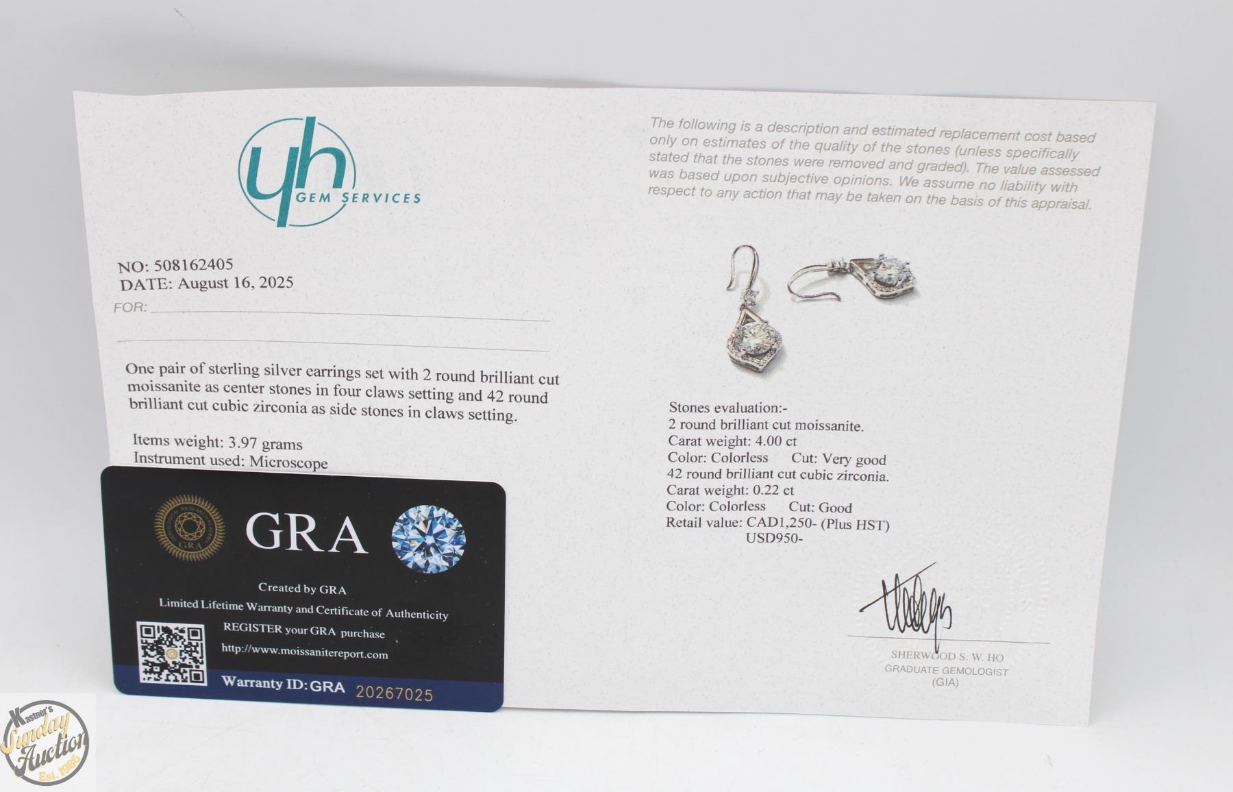 CUT MOISSANITE STONES VVS D COLOR SET IN TEAR DROP SHAPE WITH 42 ROUND BRILLIANT CUT CUBIC ZIRCONIA SET AROUND CENTER MOISSANITE SET IN 925 SILVER EARRINGS THAT ARE DROP EARRINGS RETAIL VALUE $1,250.00 **ALL ITEMS MUST BE REMOVED BY 5PM SATURDAY, NOVEMBER 1ST 2025. ALL REMAINING ITEMS WILL BE SUBJECT TO A $6.00 PER DAY STORAGE CHARGE. ANY ITEMS REMAINING AFTER MONDAY, NOVEMBER 17TH 2025 WILL BE CONSIDERED FORFEITED. NO REFUNDS WILL BE ISSUED FOR FORFEITED ITEMS. TO SCHEDULE A PICK UP APPOINTMENT CLICK HERE