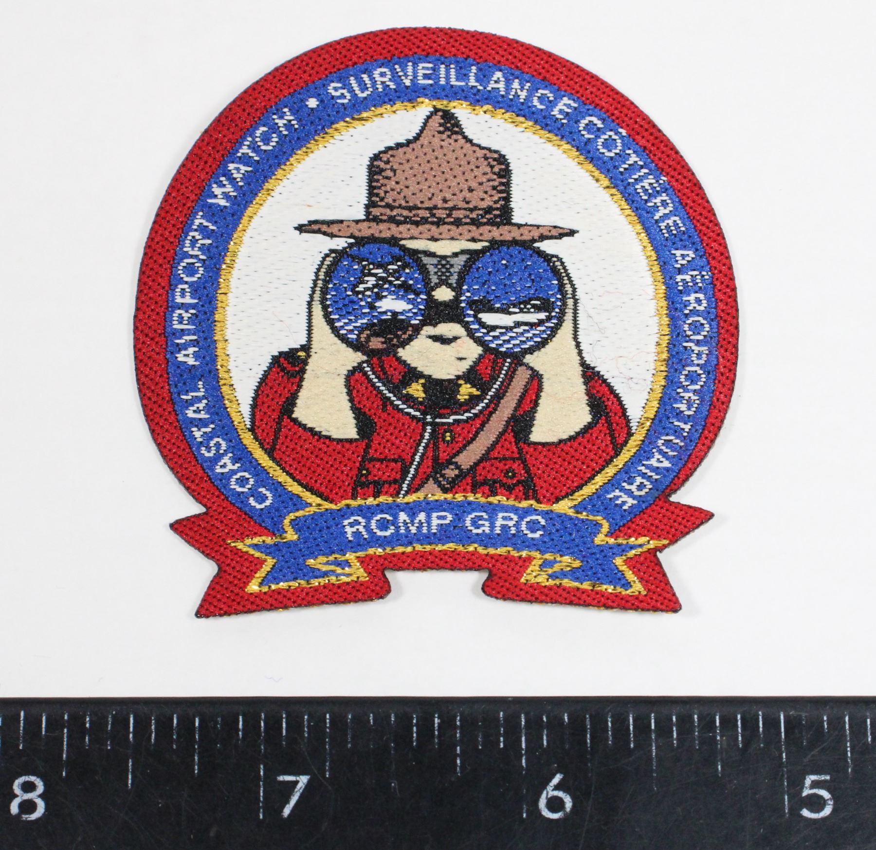 BILINGUAL BADGE SURVEILLANCE COTIERE AEROPORTUAIRE LATE 20TH CENTURY ROYAL CANADIAN MOUNTED POLICE INSIGNIA CANADA LAW ENFORCEMENT