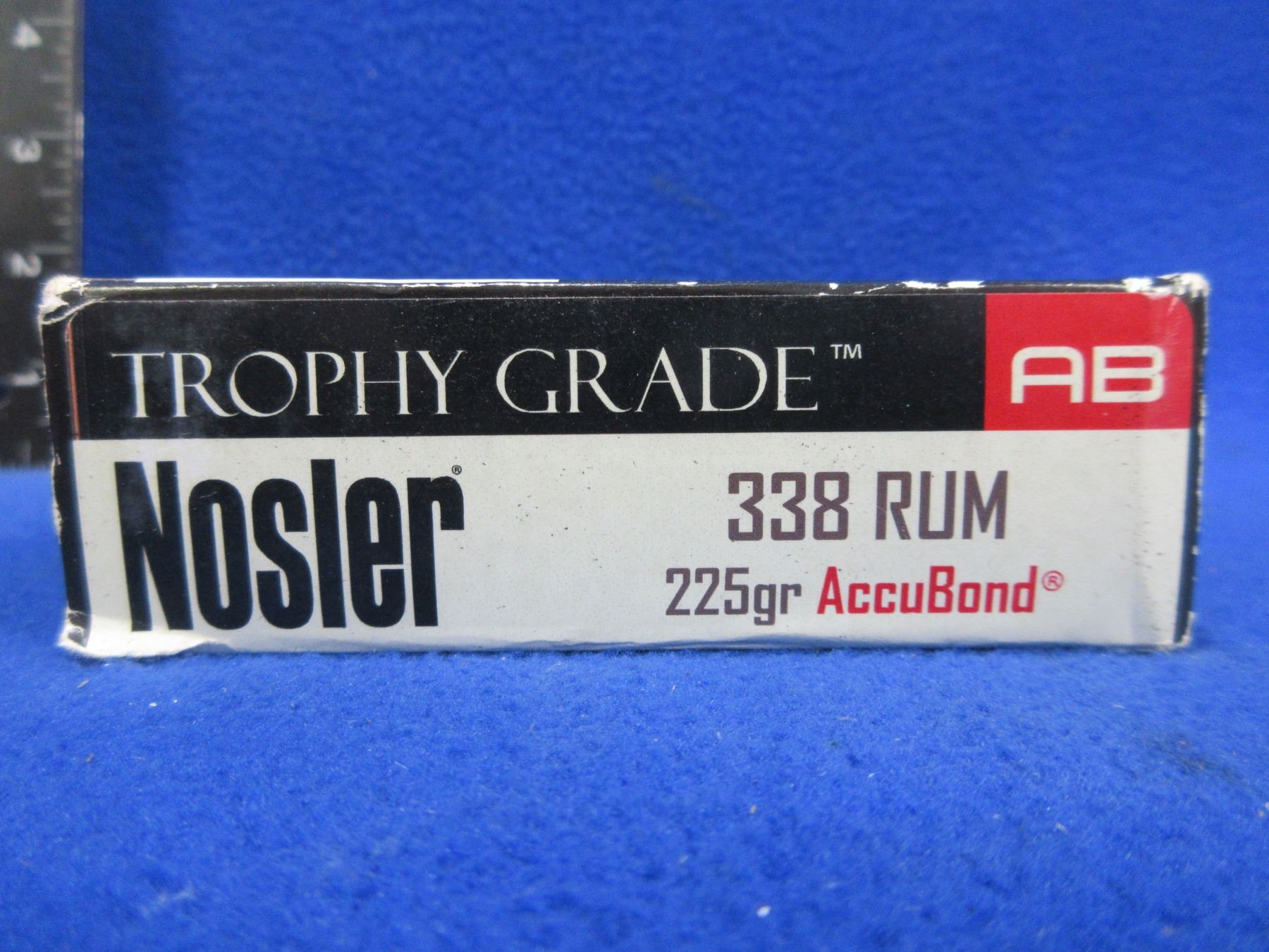 338 RUM 225gr AccuBond Nosler (Pick Up or Ship by UPS Only) Cartridges - Box of 19 + 1 Brass