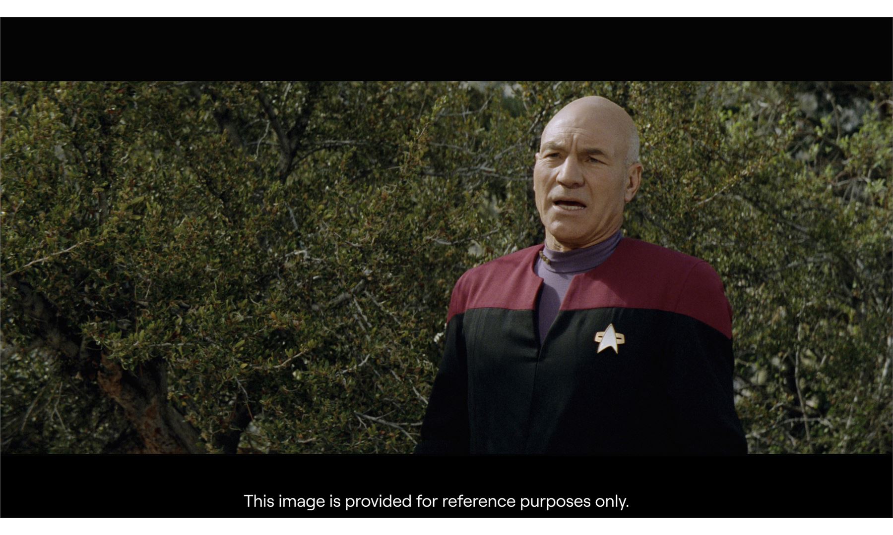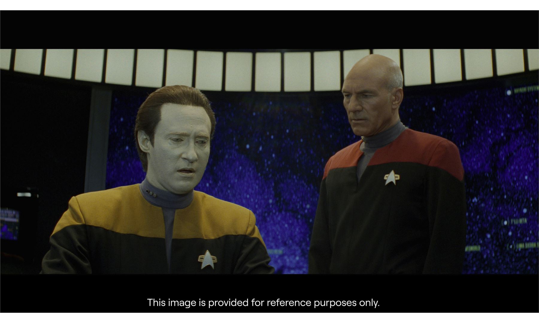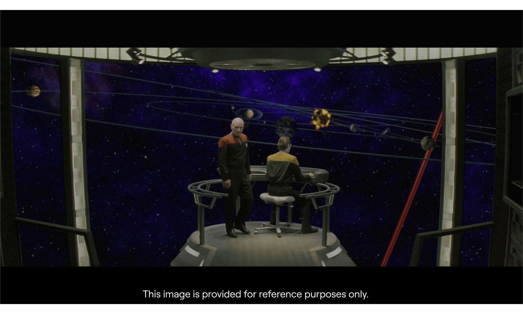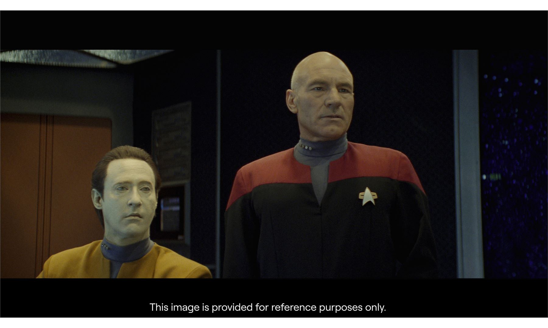 STAR TREK: GENERATIONS (1994) - Captain Jean-Luc Picard's (Patrick Stewart) Screen-Matched Starfleet Command Costume - Captain Jean-Luc Picard's (Patrick Stewart) screen-matched Starfleet command costume from David Carson's Star Trek Generations. Picard changed into his updated red-shouldered uniform before meeting with Guinan (Whoopi Goldberg) about Tolian Soran (Malcolm McDowell) and continued to wear it throughout the film. A small deformation where the yoke meets the body of the jumpsuit screen-matches this particular costume to the scene with Picard in Stellar Cartography with Data (Brent Spiner).