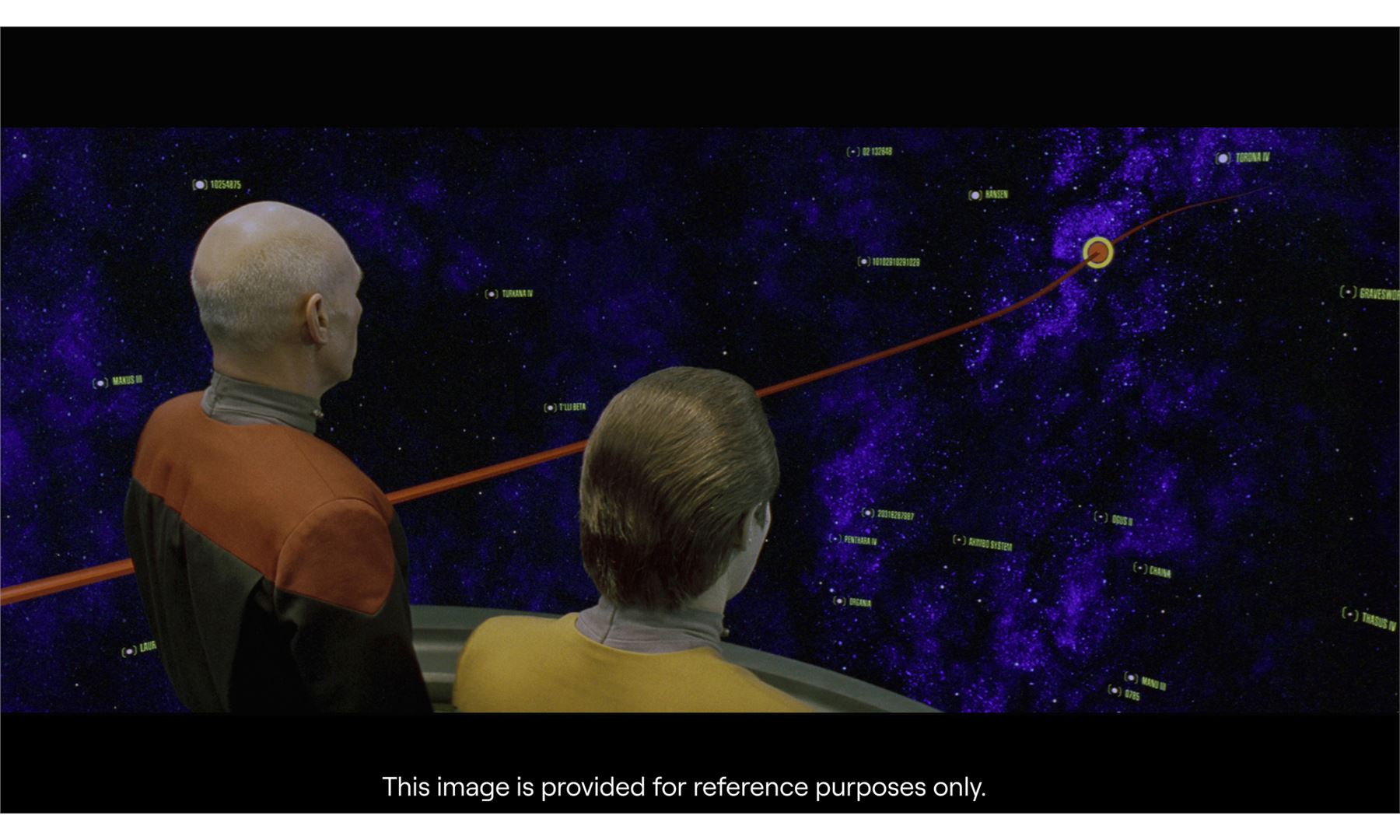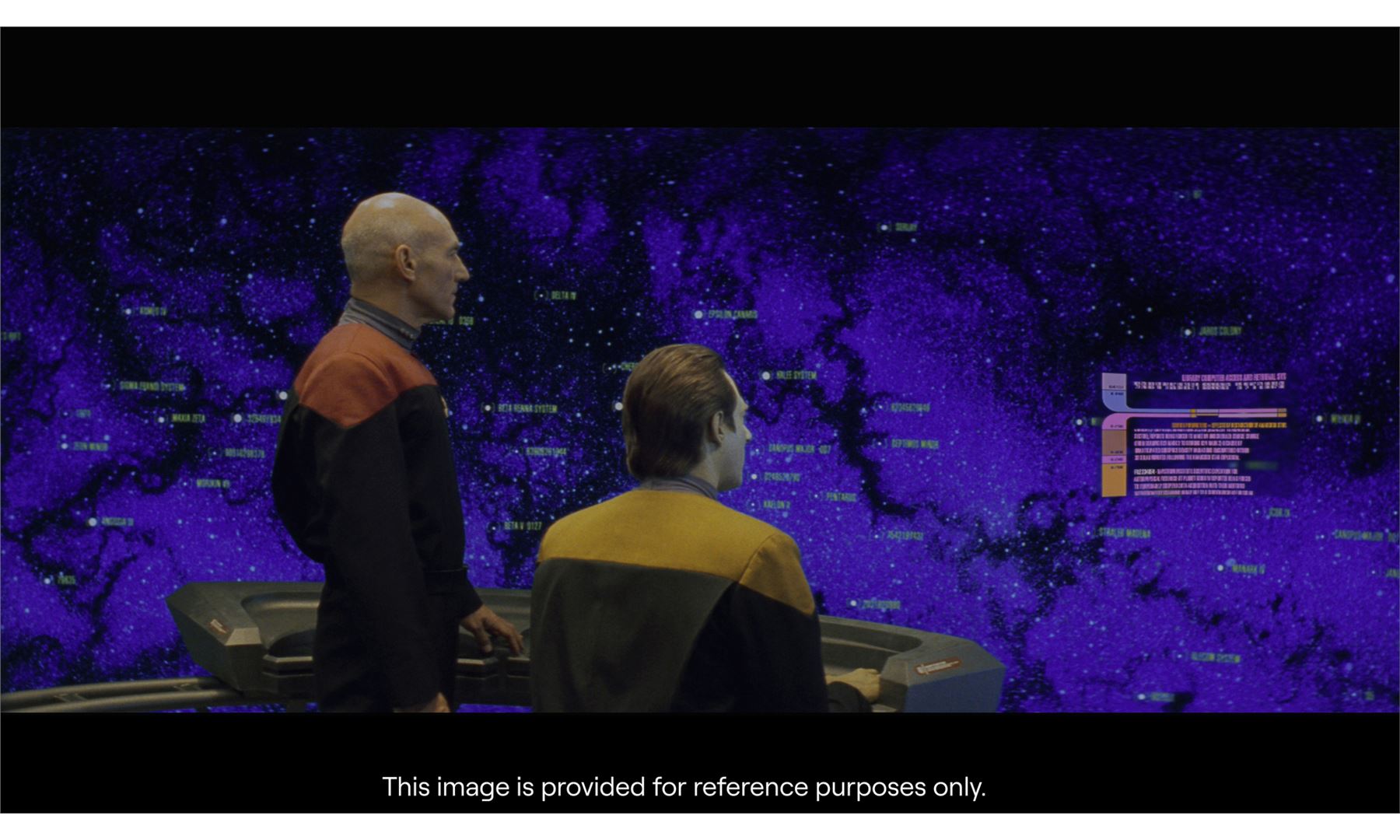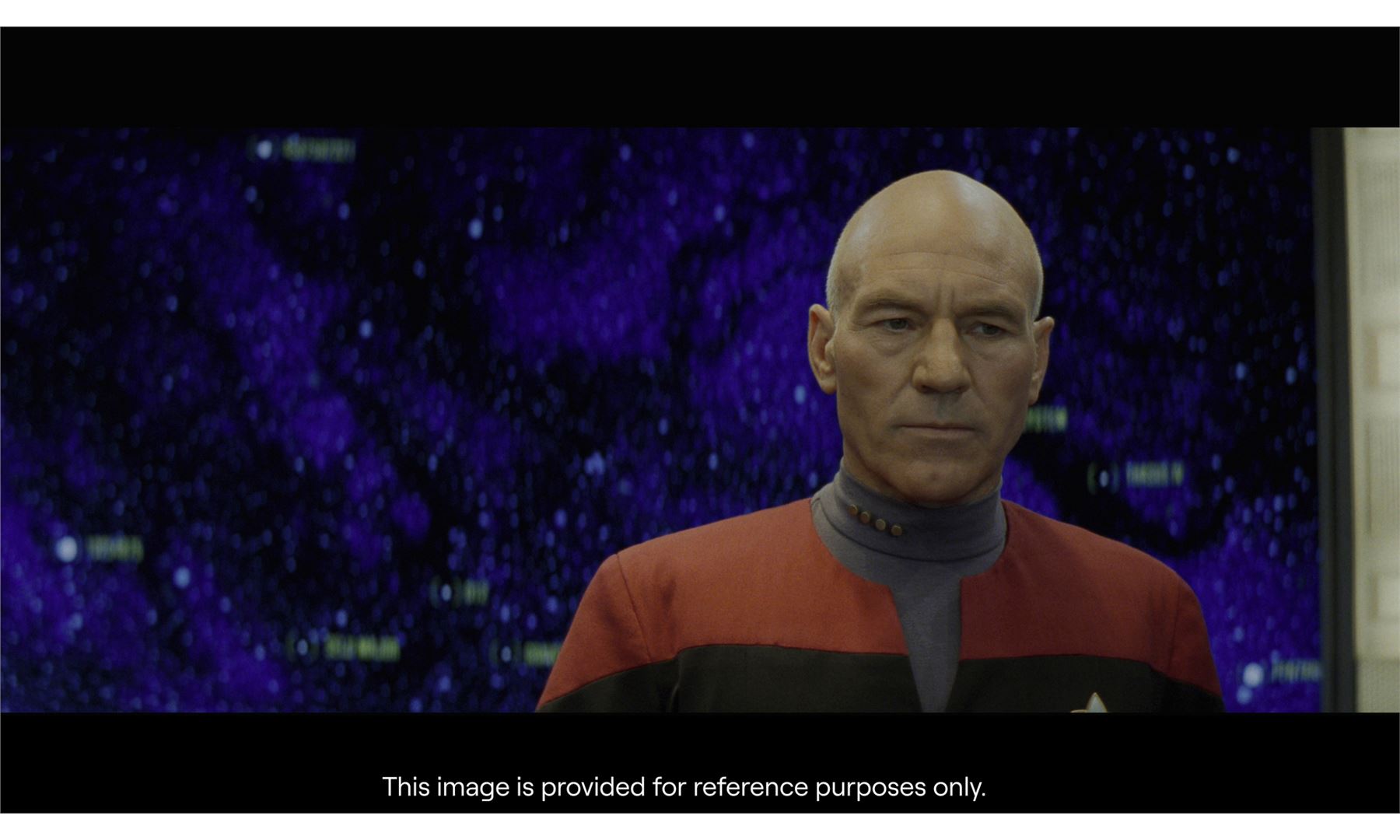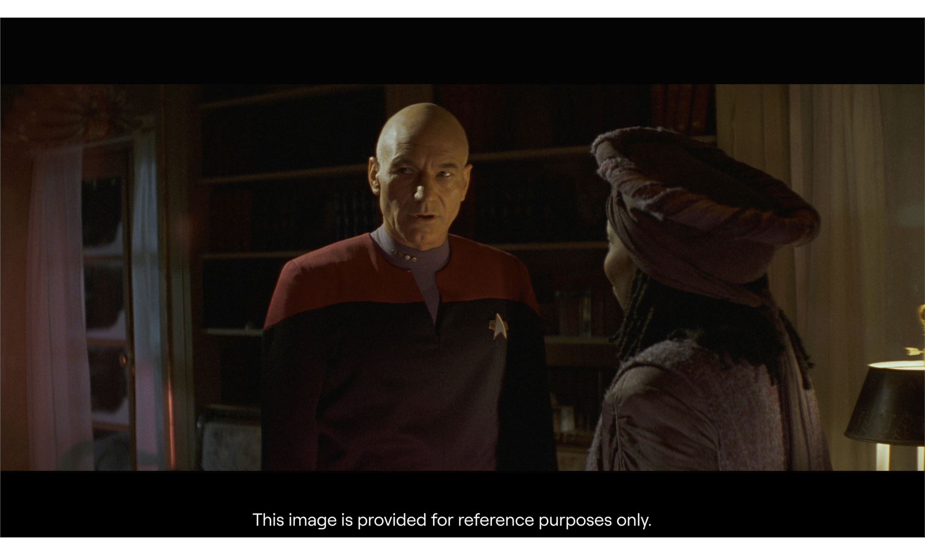 STAR TREK: GENERATIONS (1994) - Captain Jean-Luc Picard's (Patrick Stewart) Screen-Matched Starfleet Command Costume - Captain Jean-Luc Picard's (Patrick Stewart) screen-matched Starfleet command costume from David Carson's Star Trek Generations. Picard changed into his updated red-shouldered uniform before meeting with Guinan (Whoopi Goldberg) about Tolian Soran (Malcolm McDowell) and continued to wear it throughout the film. A small deformation where the yoke meets the body of the jumpsuit screen-matches this particular costume to the scene with Picard in Stellar Cartography with Data (Brent Spiner).