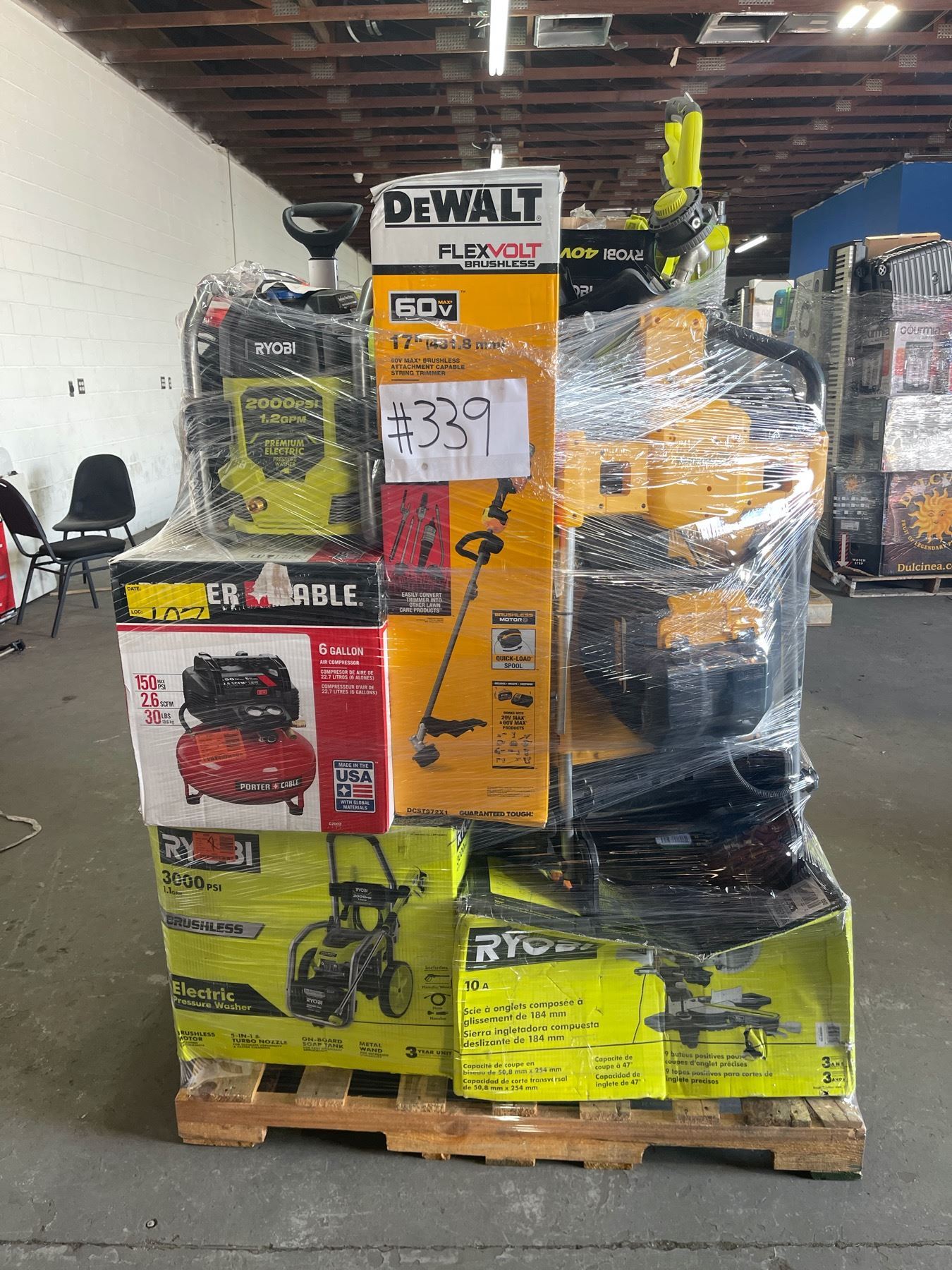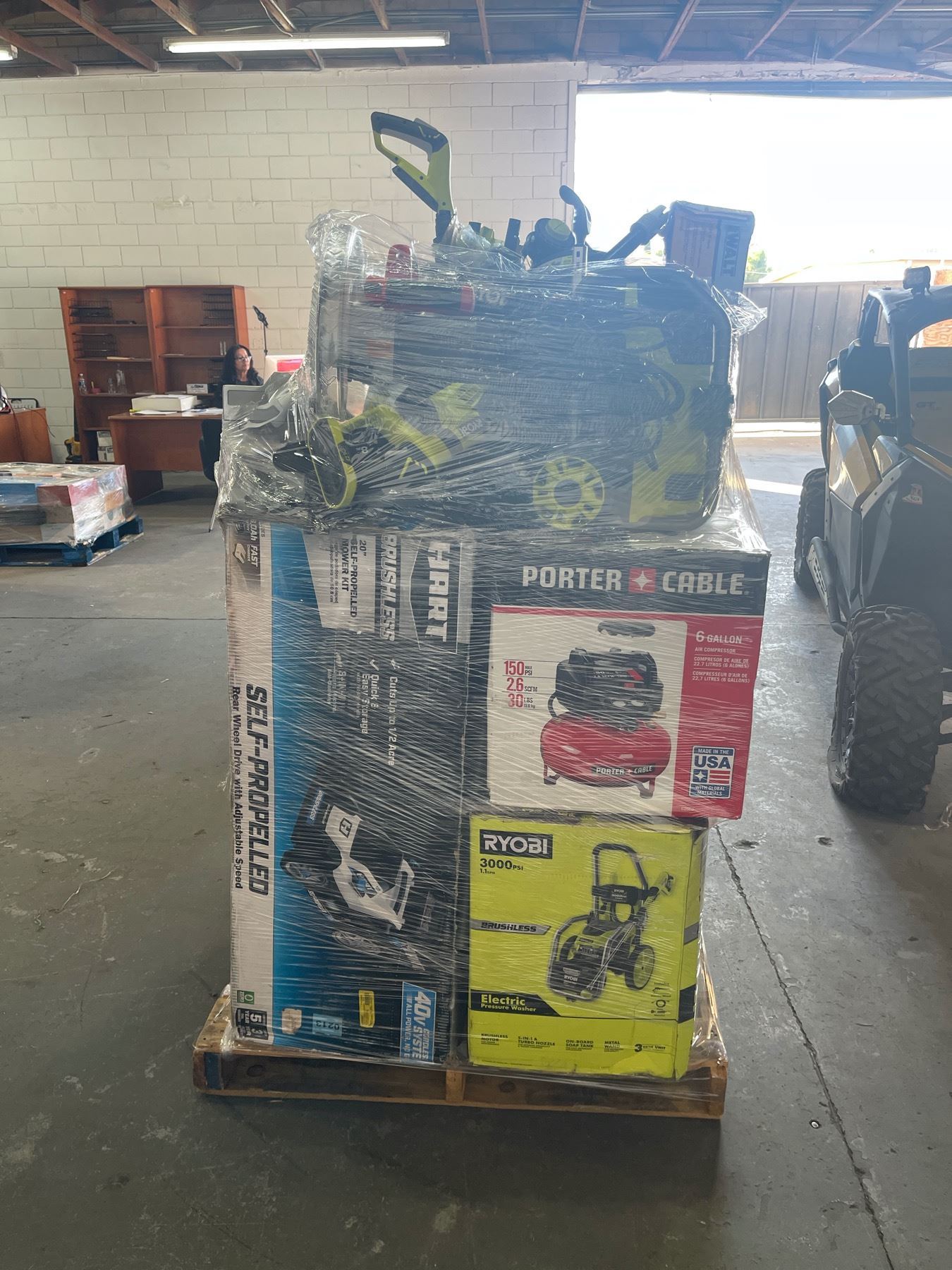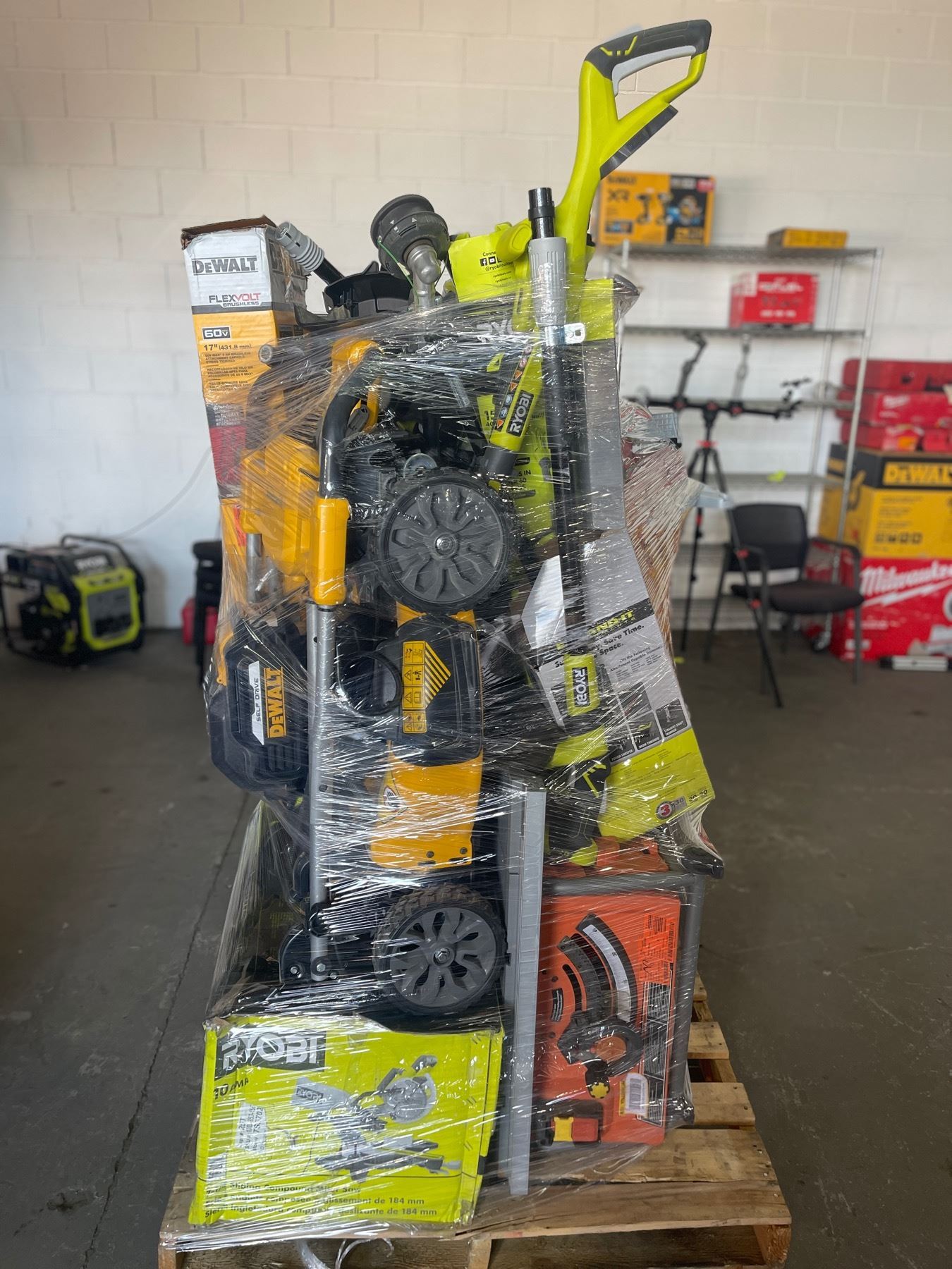 Pallet de Herramienta Home Depot, cada uno de los productos están clasificados como retornos y liquidaciones los cuales pueden venir usados, rotos y incluso completamente nuevos, apueste con responsabilidad y a lo que usted mire.