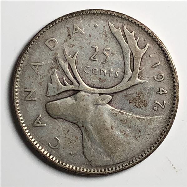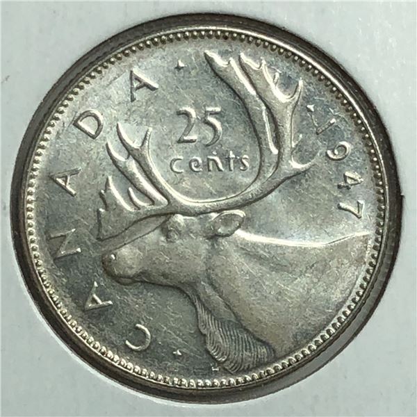 1947 Dot King George VI 25 Cents EF+ Key Date Very Nice Example